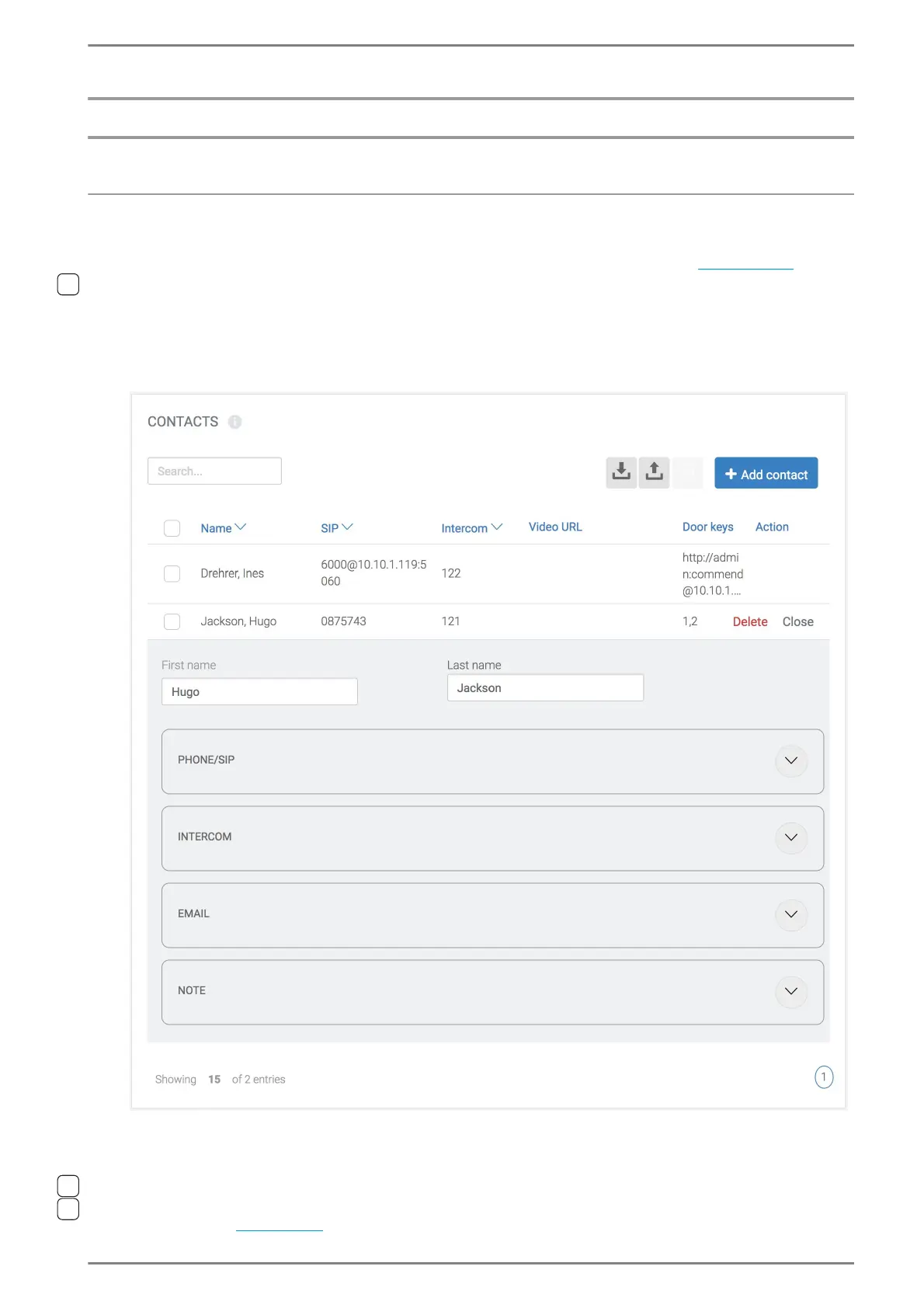 Web interface – Contacts