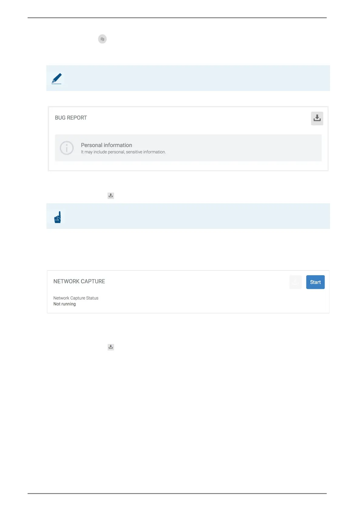 In this section, a detailed bug report can be created for the technical support. This section is mainly