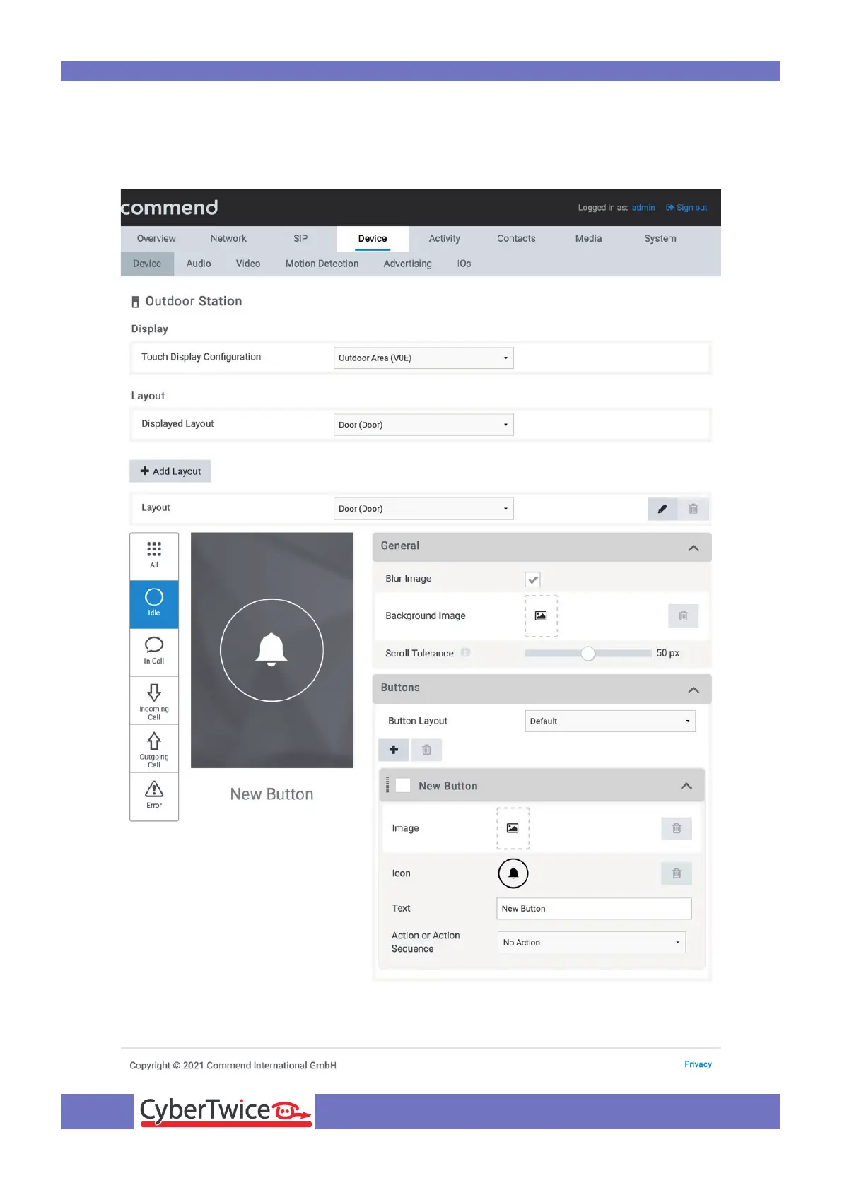 Configure the Commend SIP Intercom Terminal for the CyberGate serviceCyberTwice