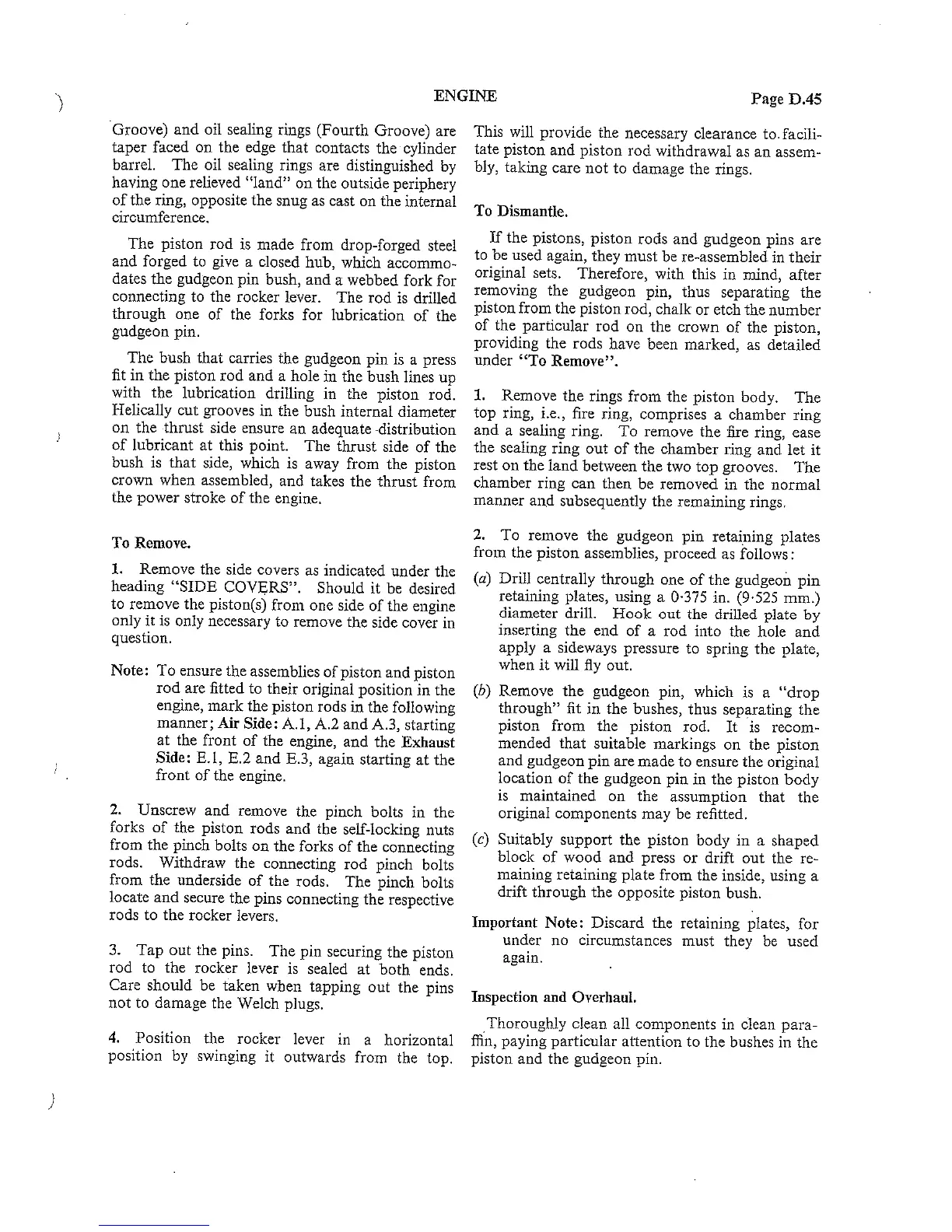Commer TS3 3D 199 - To Remove; To Dismantle; Inspection and Overhaul