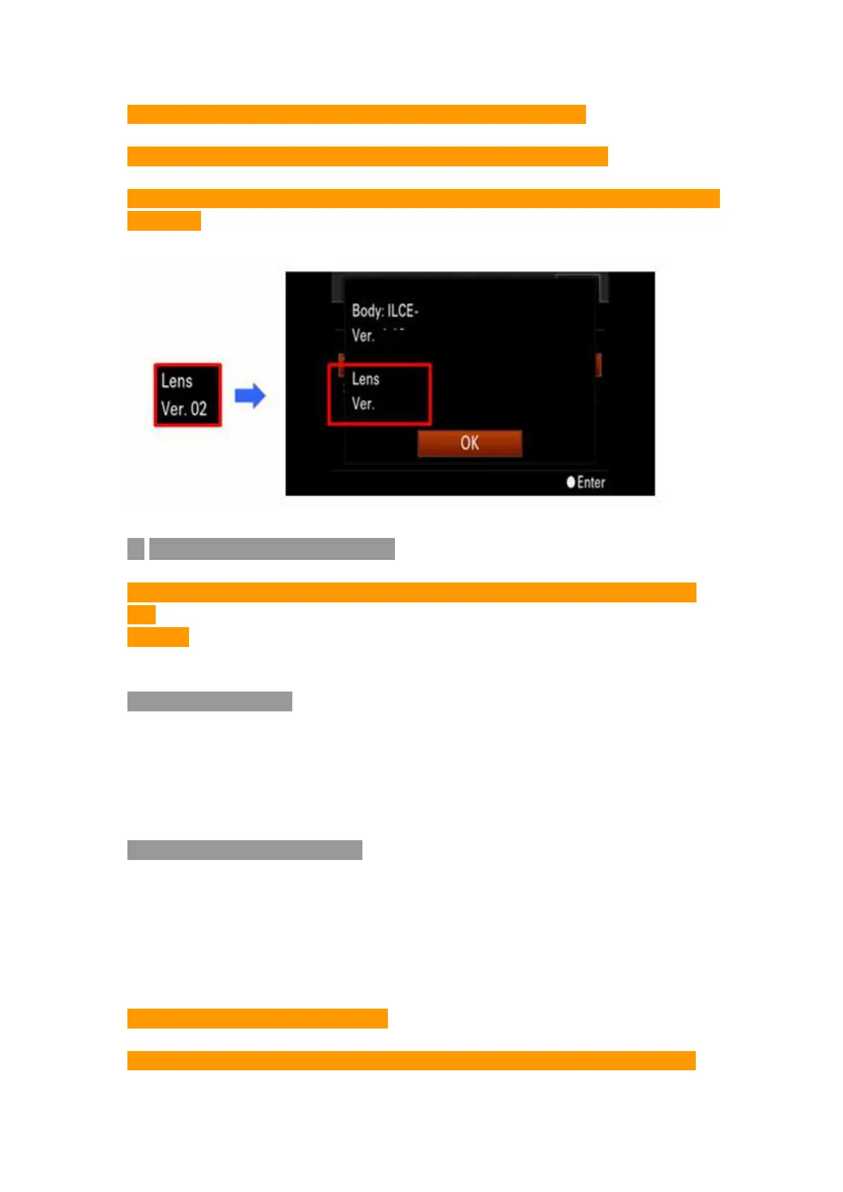 2. Camera will show the current Lens (ENF-E1 adapter) Version