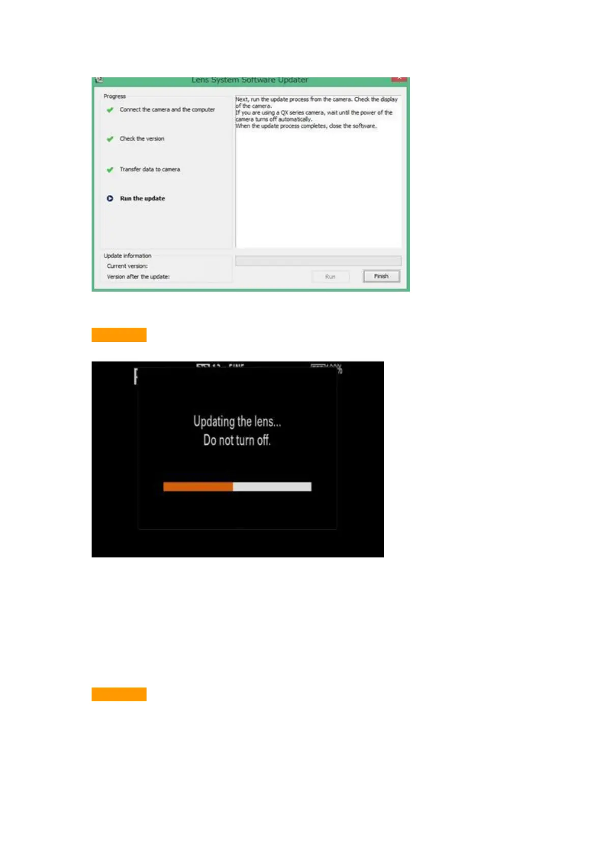 While it appears with ‘Lens update complete’ on your camera’s screen, the