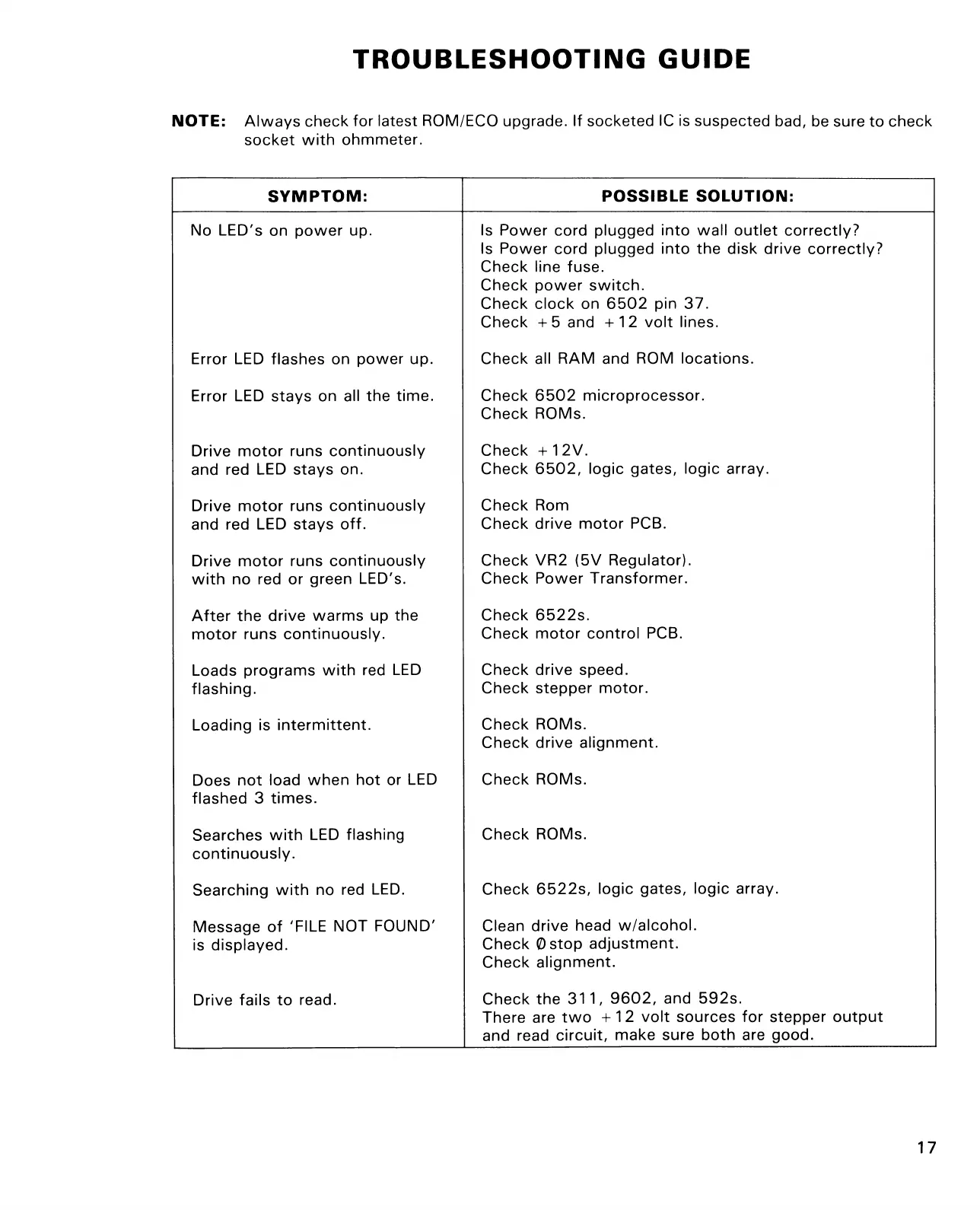 TROUBLESHOOTING GUIDE