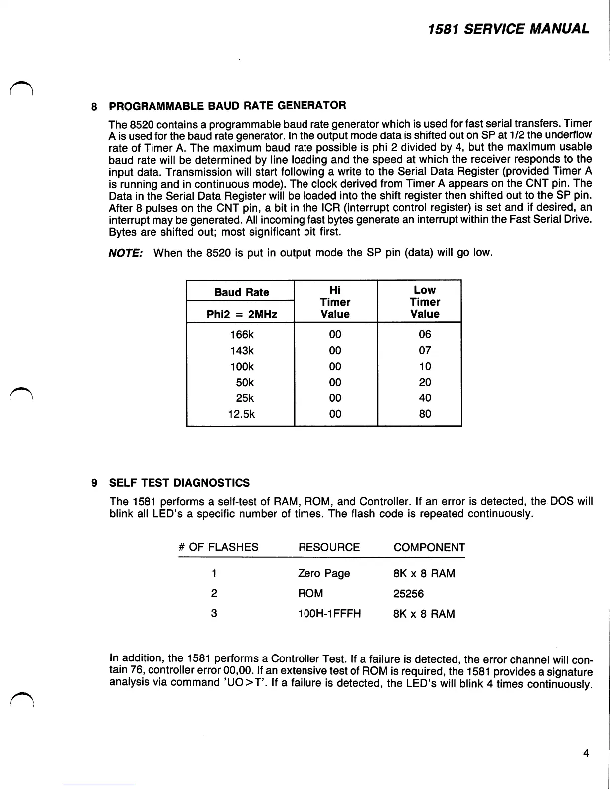 Commodore Computers 1581 - Diagnostic Self-Tests; Test Procedures and Error Indicators; Controller and ROM Error Analysis