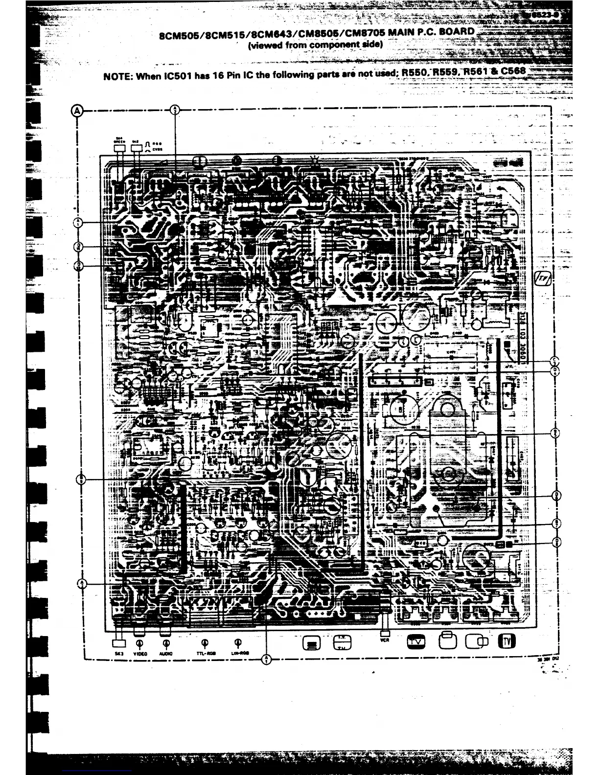 Commodore 1084P - PC Board Component Layouts; Main PC Board Layout (CM8505;CM8705)