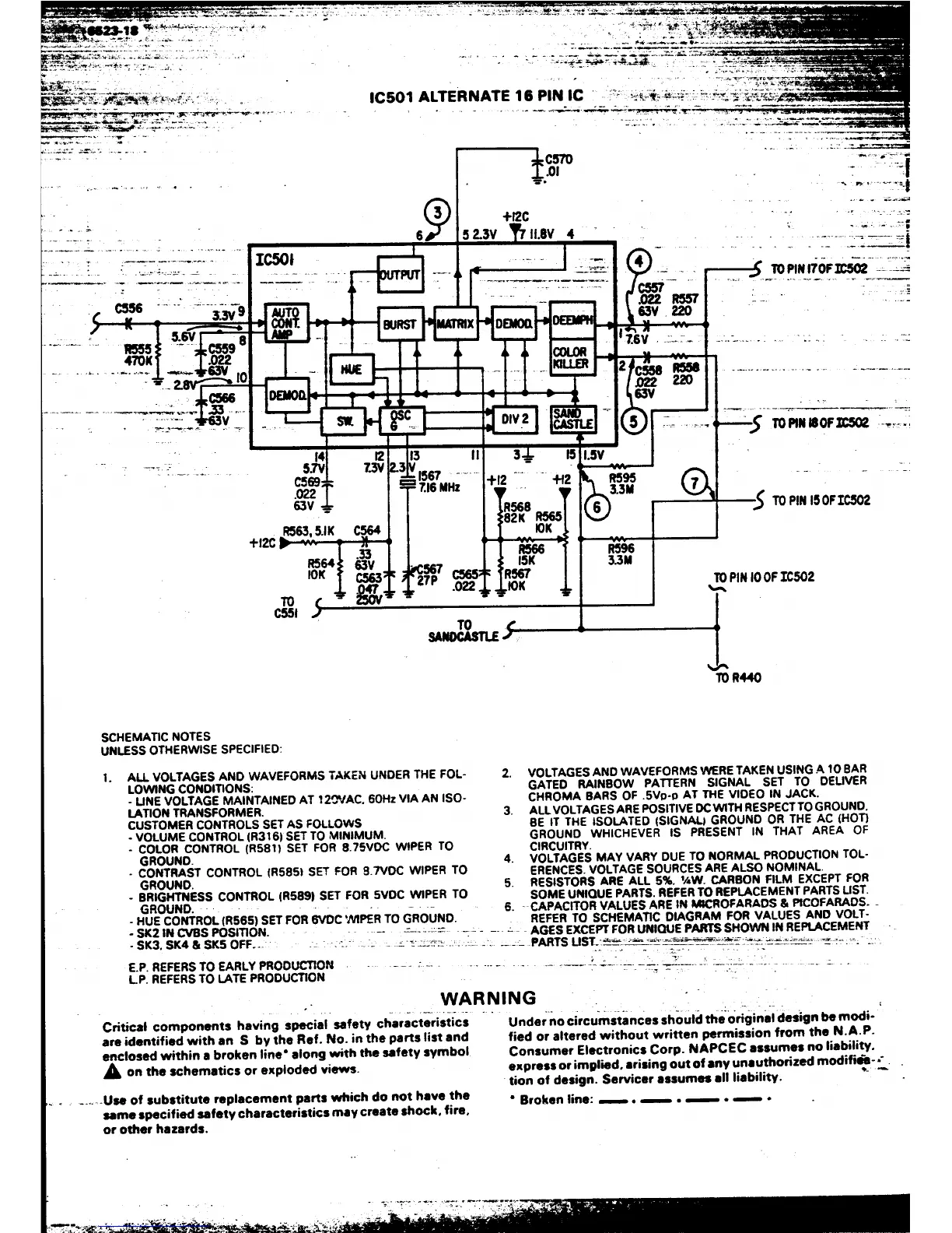 Commodore 1084P - IC501 Schematic Diagram; Schematic Notes and Safety Warnings