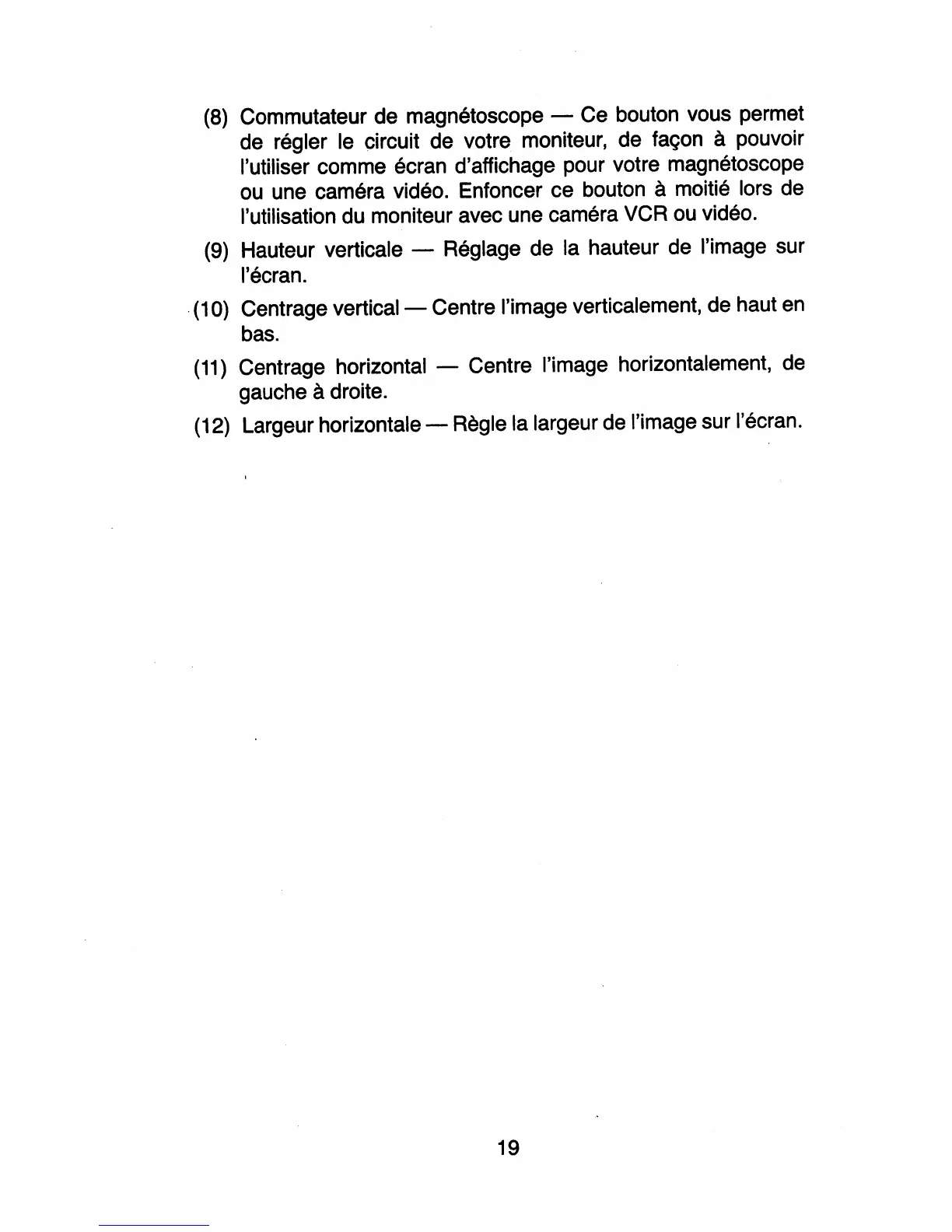 (12) Largeur horizontale - Regie la largeur de I'image sur I'ecran.