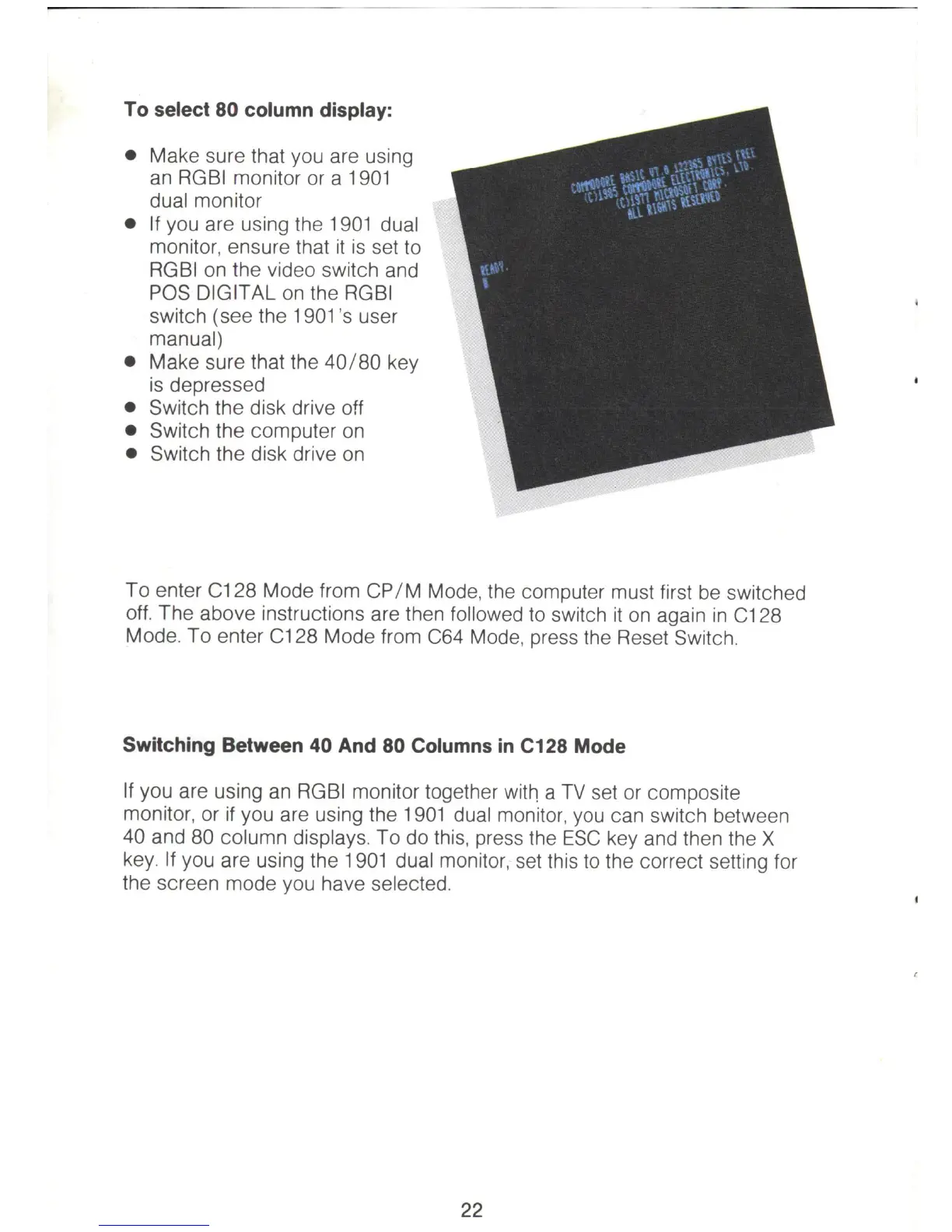 Mode. To enter C128 Mode from C64 Mode, press the Reset Switch.