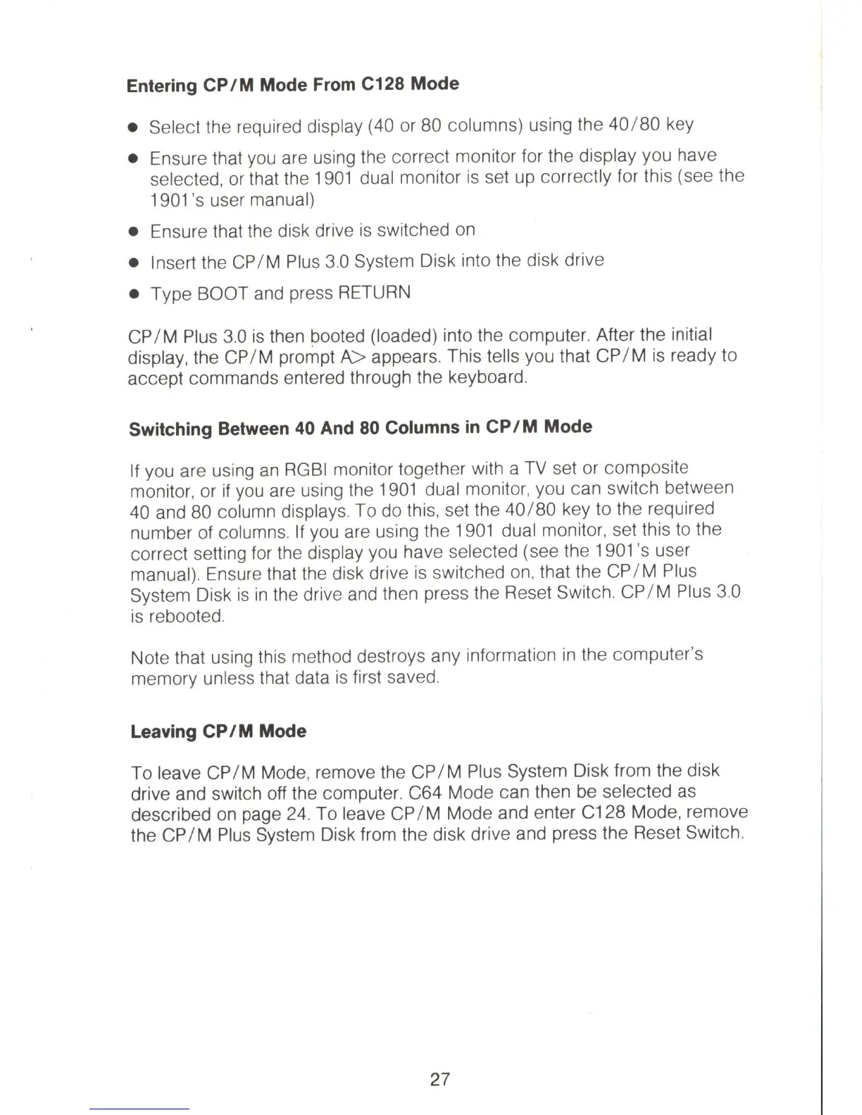 / M Mode and enter C128 Mode, remove