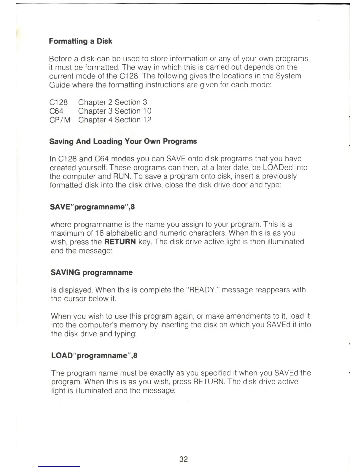 formatted disk into the disk drive, close the disk drive door and type: