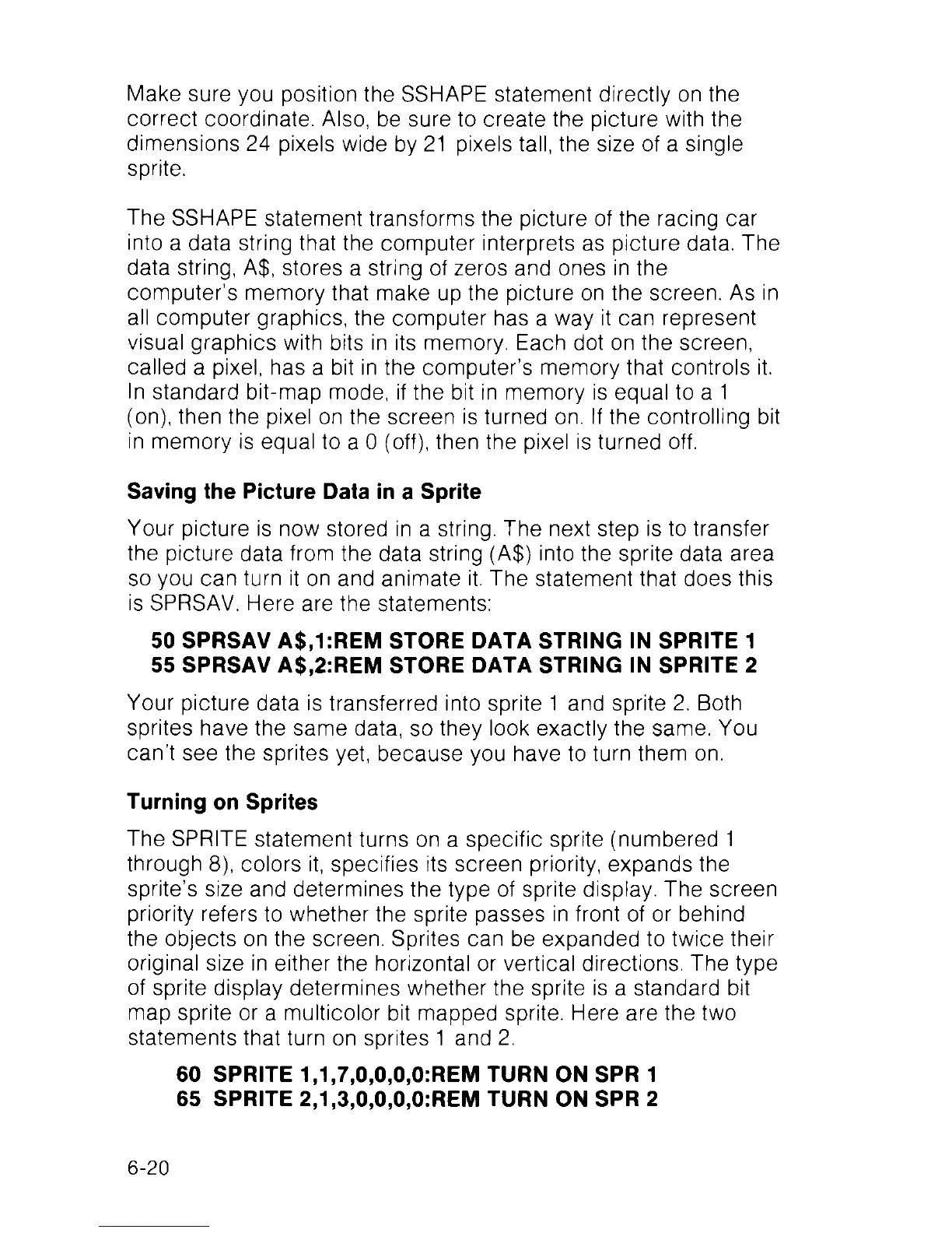 50 SPRSAV A$,1:REM STORE DATA STRING IN SPRITE 1