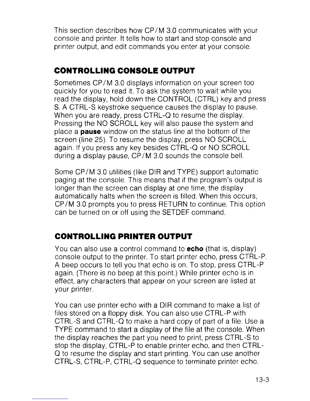 during a display pause, CP/M 3.0 sounds the console bell.