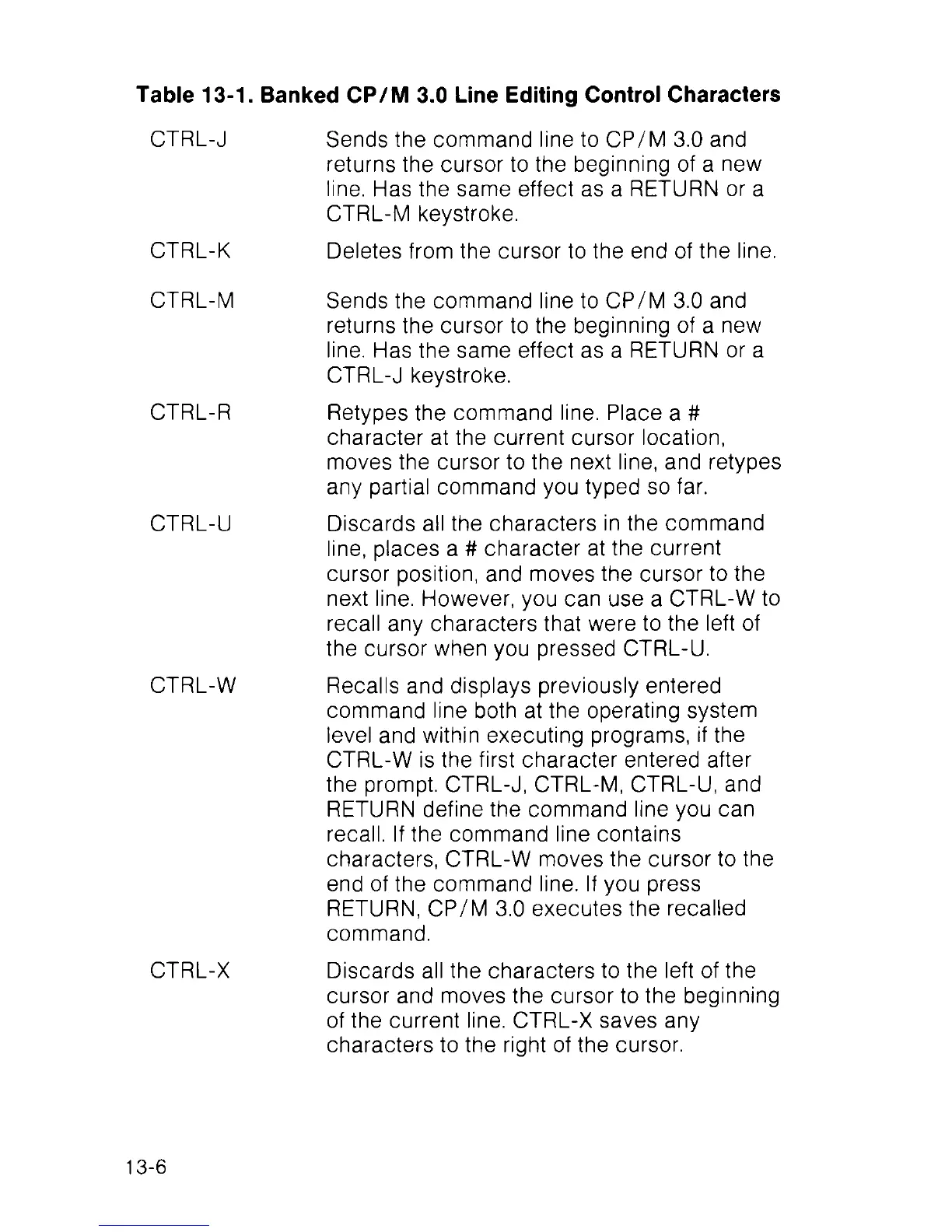 Table 13-1. Banked CP/M 3.0 Line Editing Control Characters