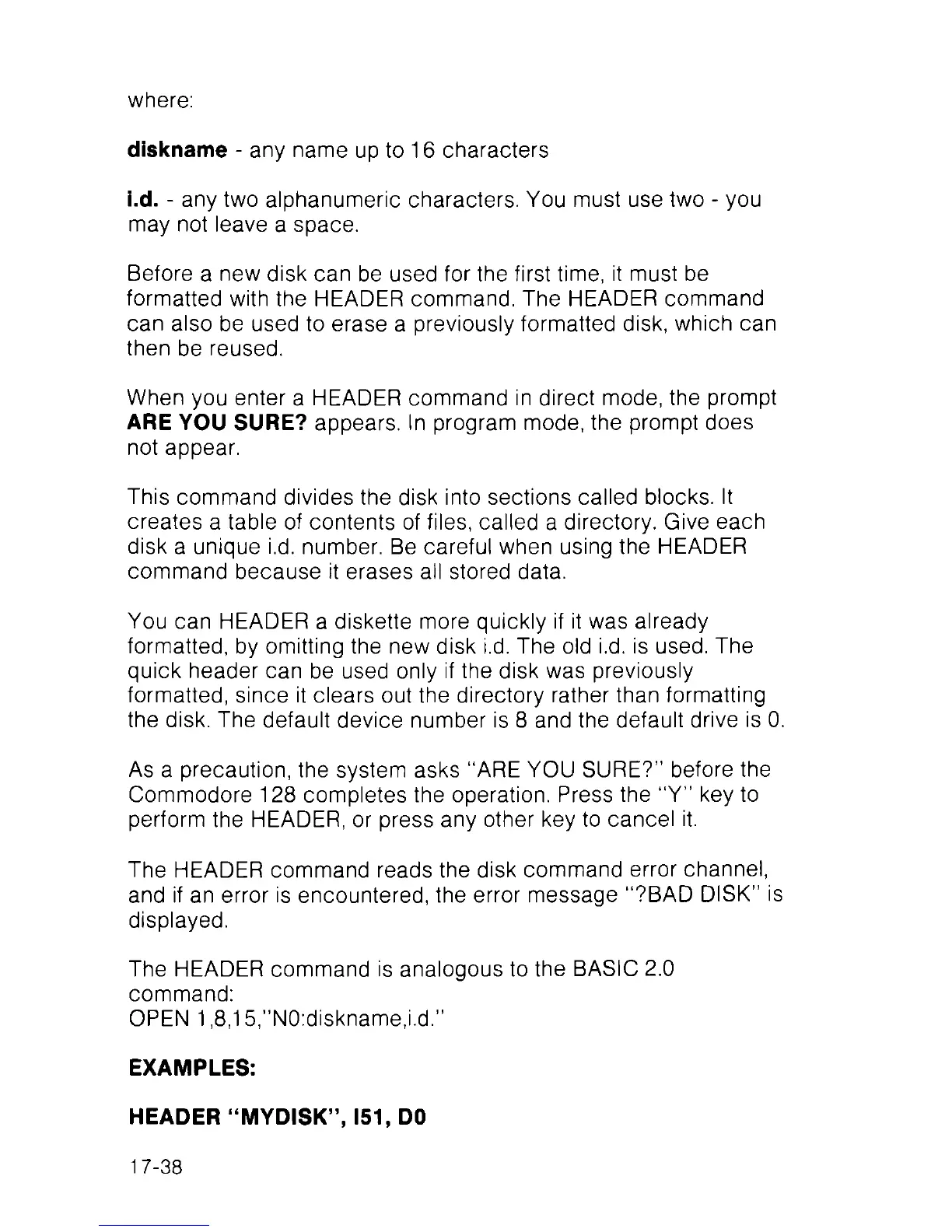 formatted, by omitting the new disk i.d. The old i.d. is used. The