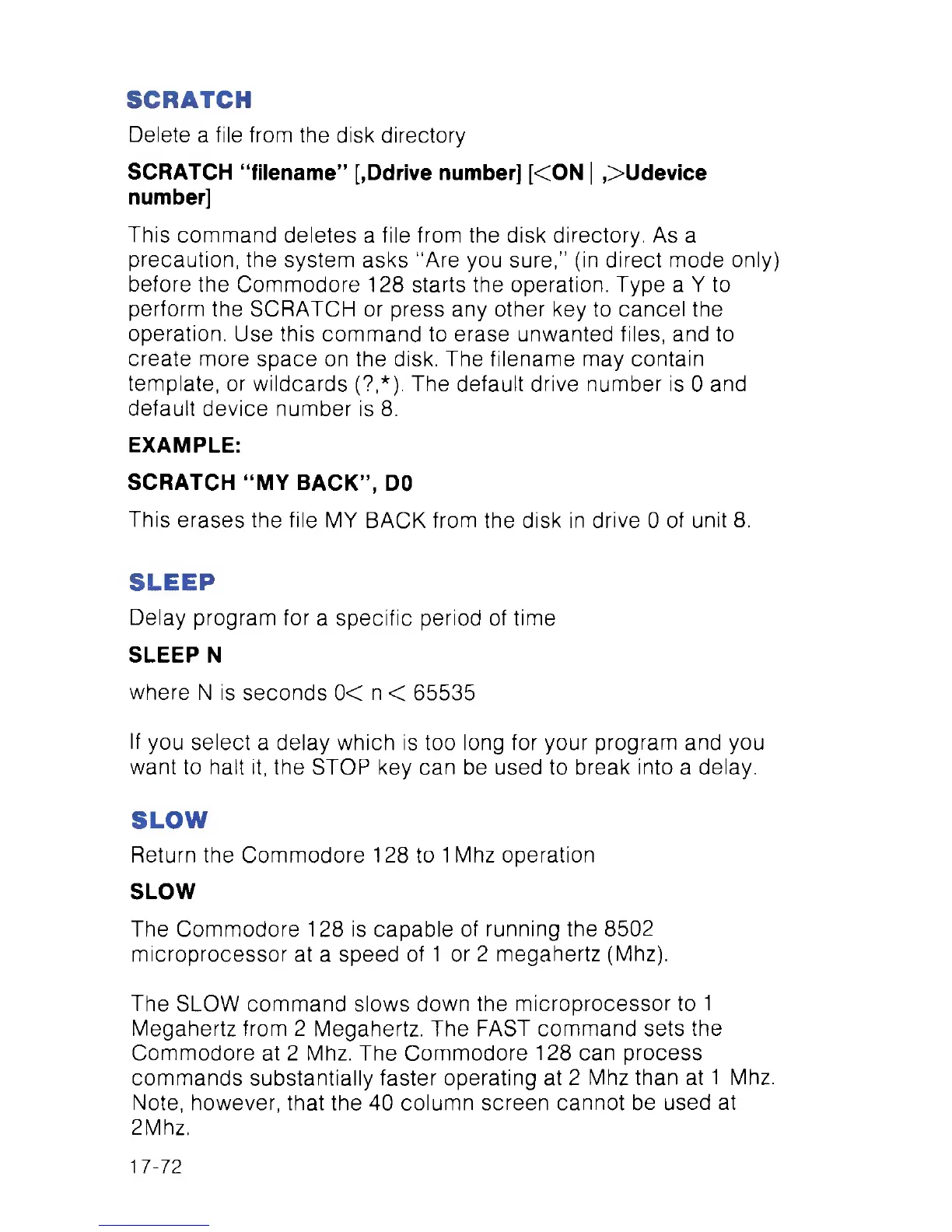 SCRATCH “filename” [,Ddrive number] [CON | ,>Udevice
