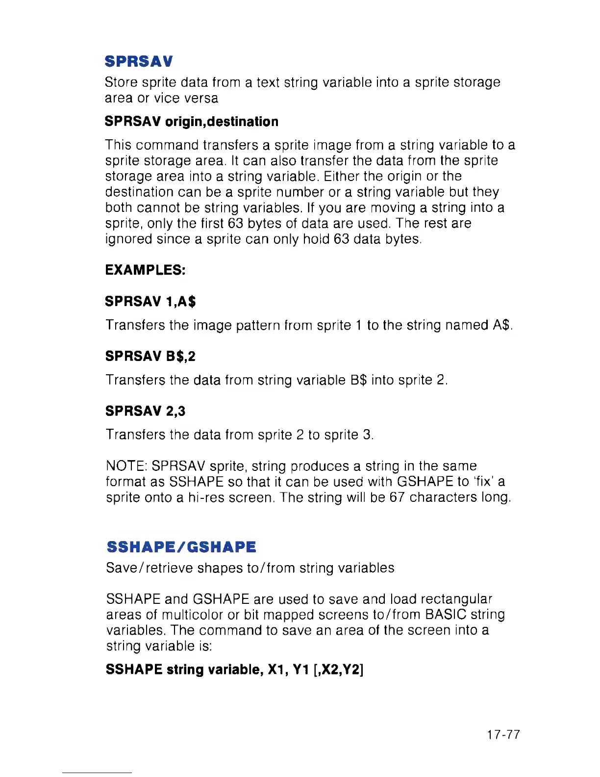 NOTE: SPRSAV sprite, string produces a string in the same