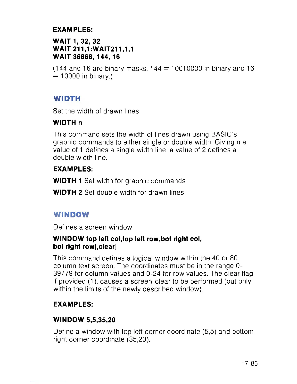 This command sets the width of lines drawn using BASIC’s
