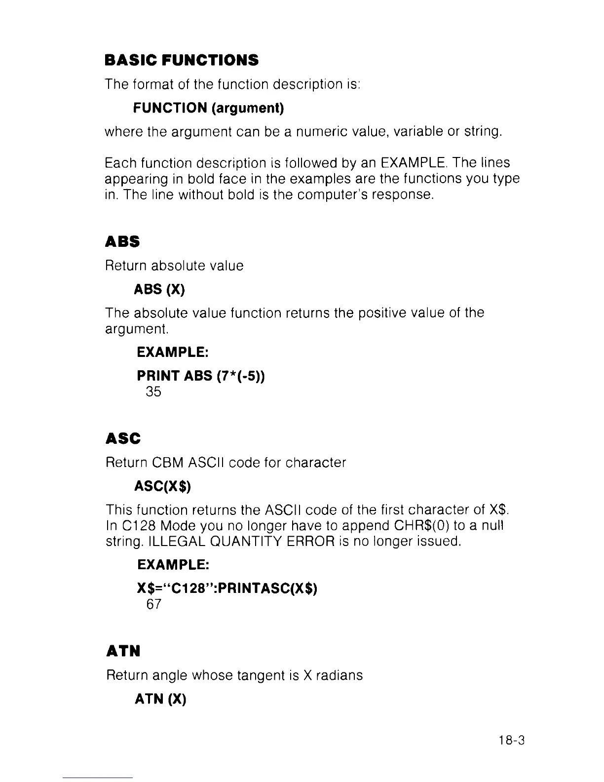appearing in bold face in the examples are the functions you type