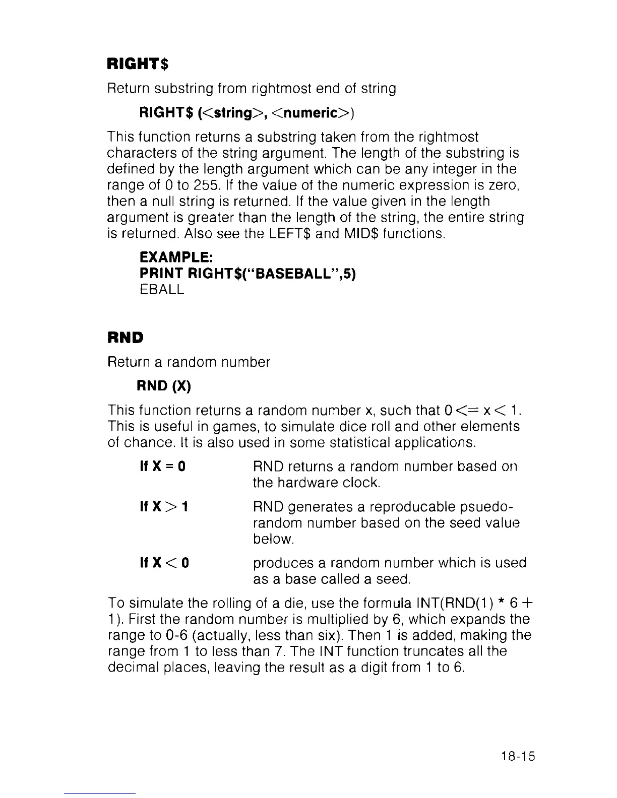 RIGHT$ (<string>, <numeric>)