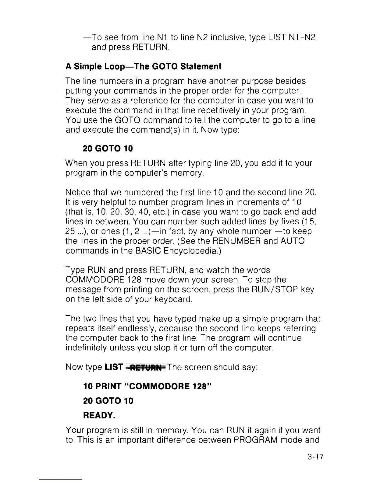 10 PRINT “COMMODORE 128”