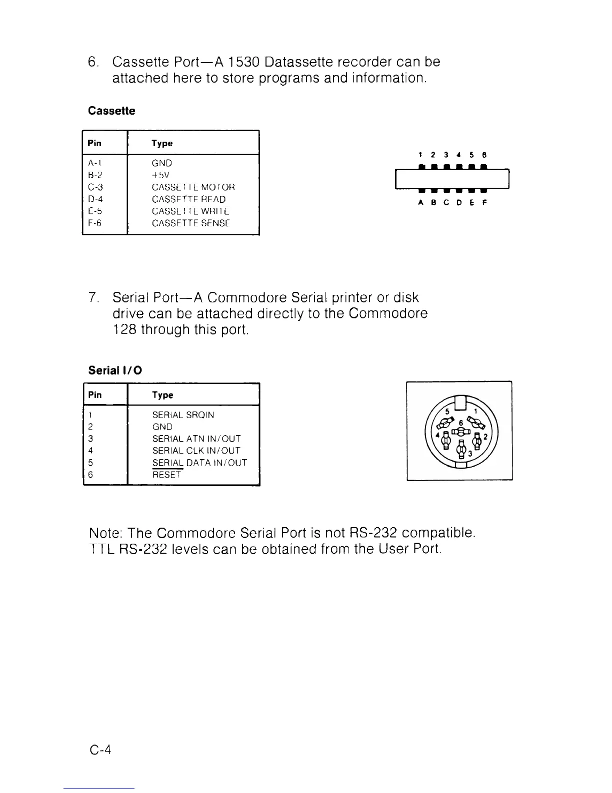 Note: The Commodore Serial Port is not RS-232 compatible.