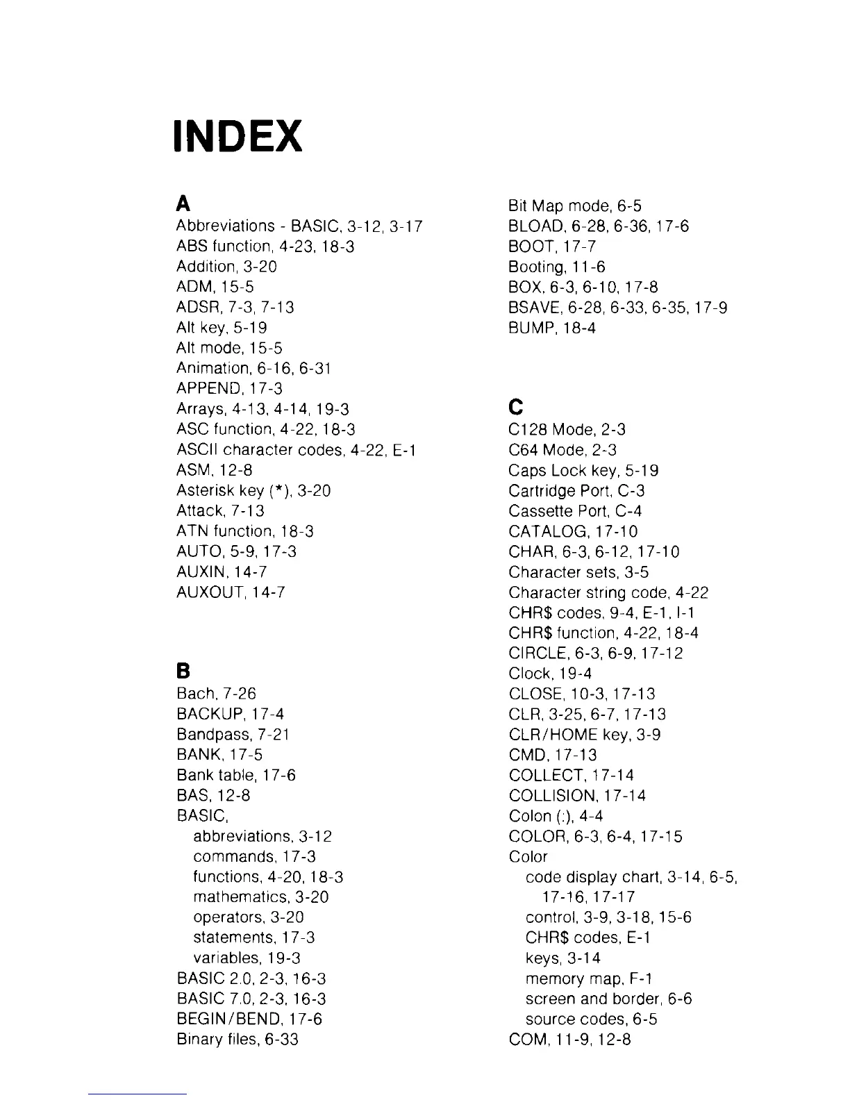 BSAVE, 6-28, 6-33, 6-35, 17-9
