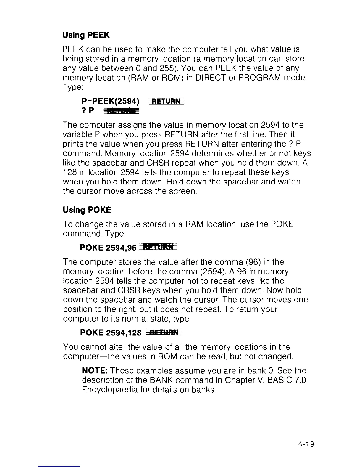 Commodore 128 - Using PEEK; Using POKE