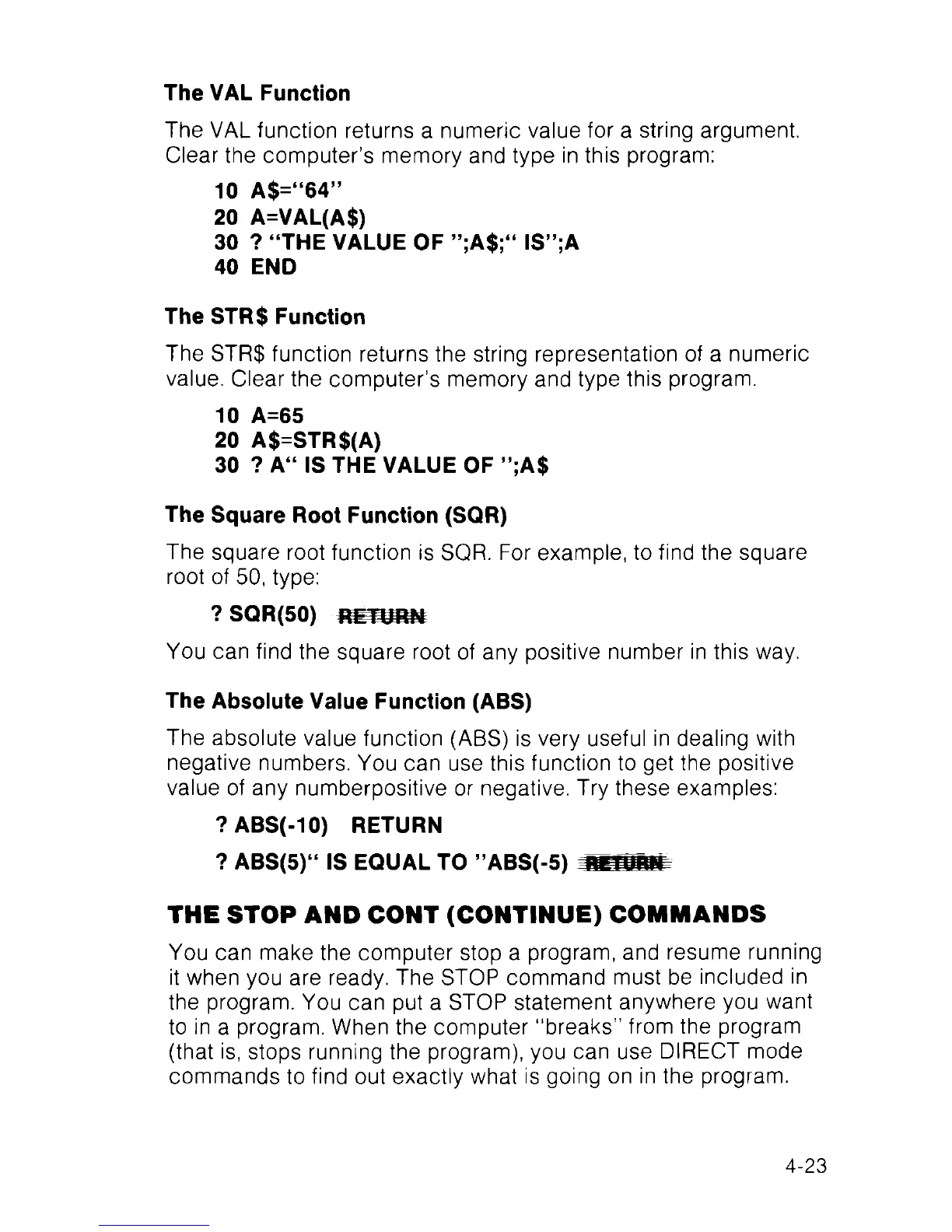 THE STOP AND CONT (CONTINUE) COMMANDS