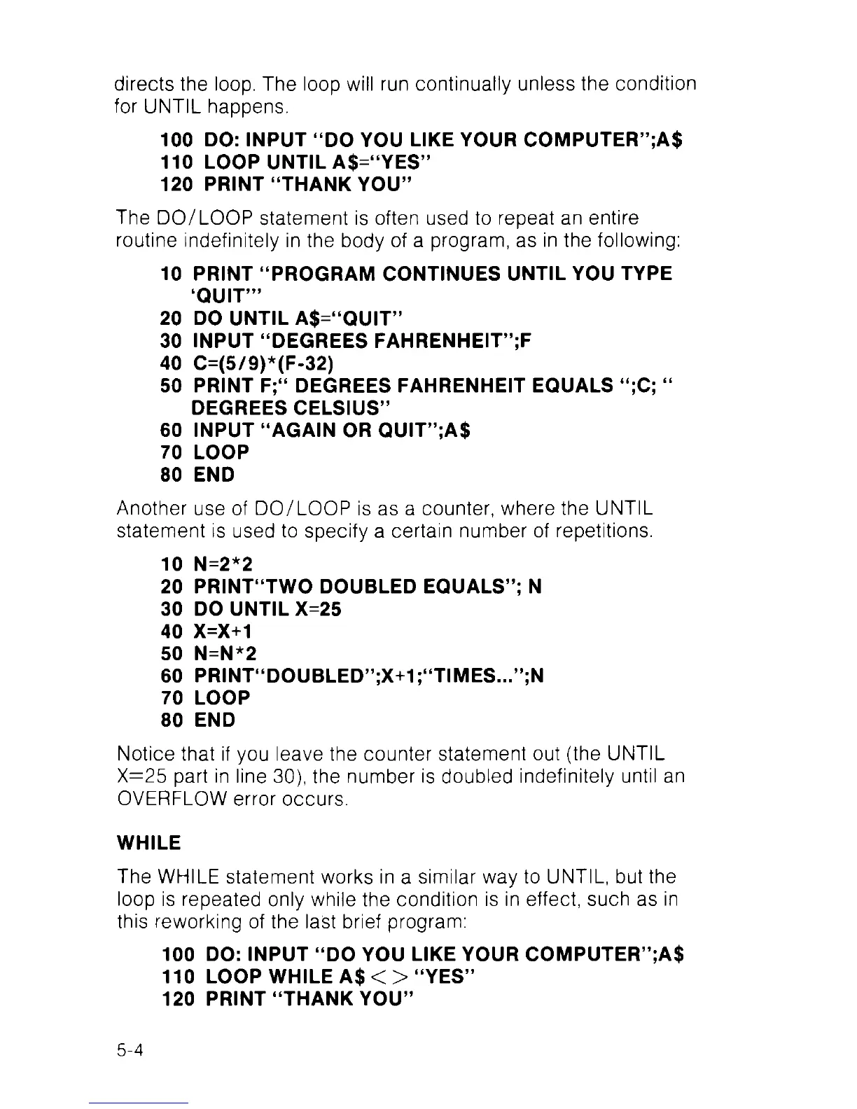 Another use of DO/LOOP is as a counter, where the UNTIL