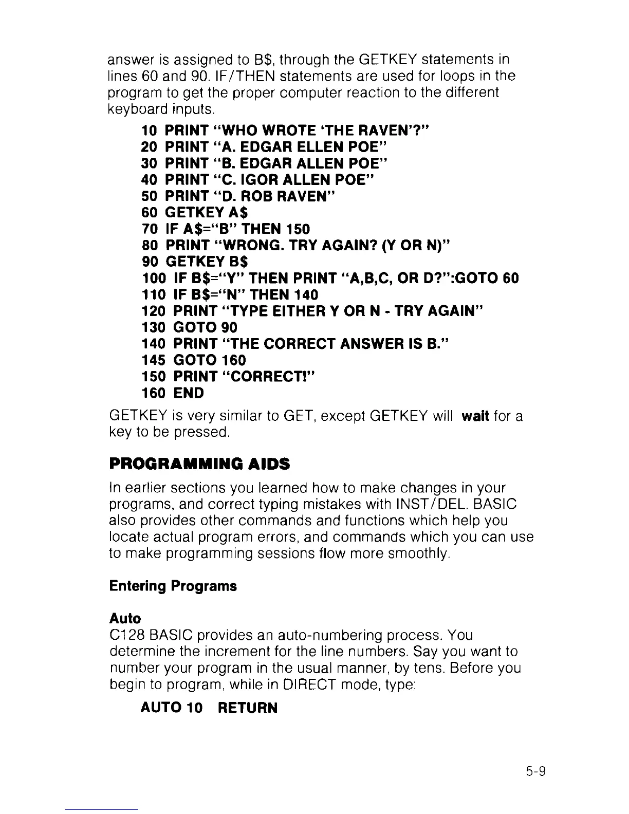 answer is assigned to B$, through the GETKEY statements in