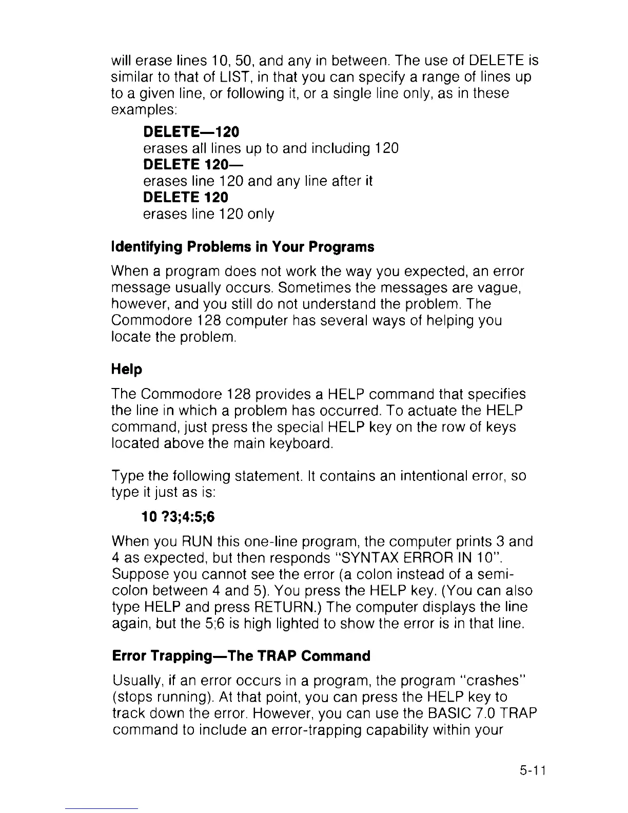 Commodore 128 - Error Trapping-The TRAP Command; Help; Identifying Problems in Your Programs
