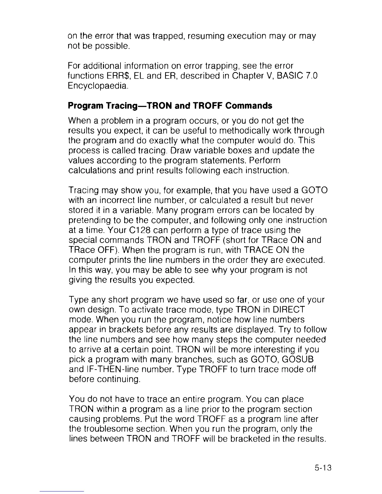 functions ERFt$, EL and ER, described in Chapter V, BASIC 7.0