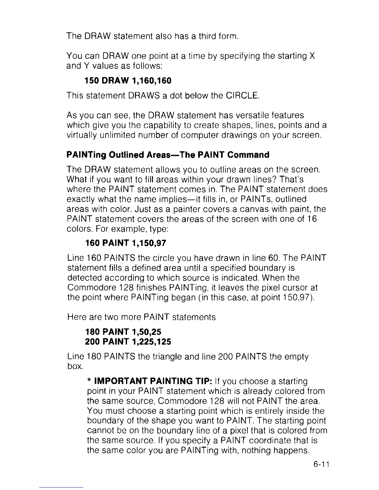 the same source, Commodore 128 will not PAINT the area.