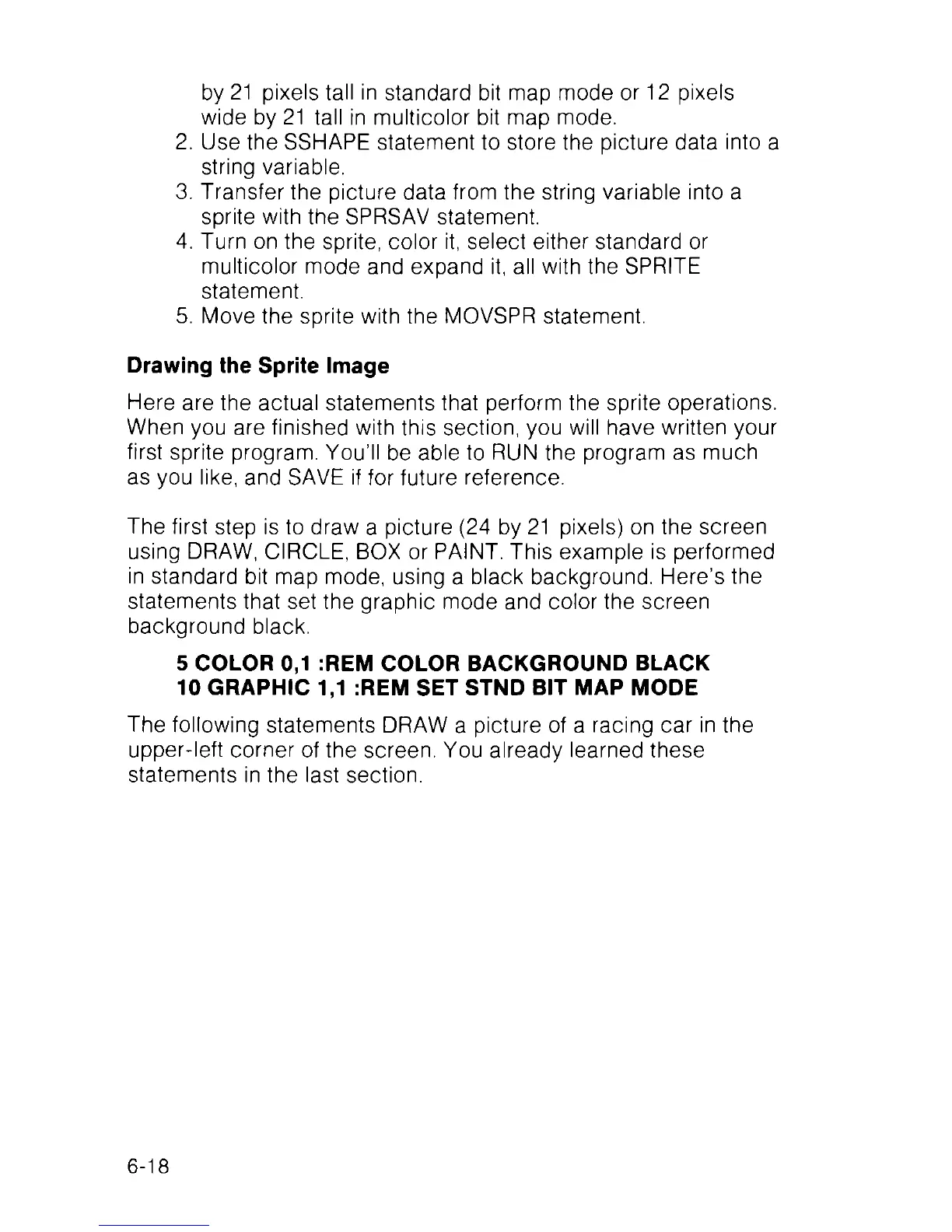 Here are the actual statements that perform the sprite operations.