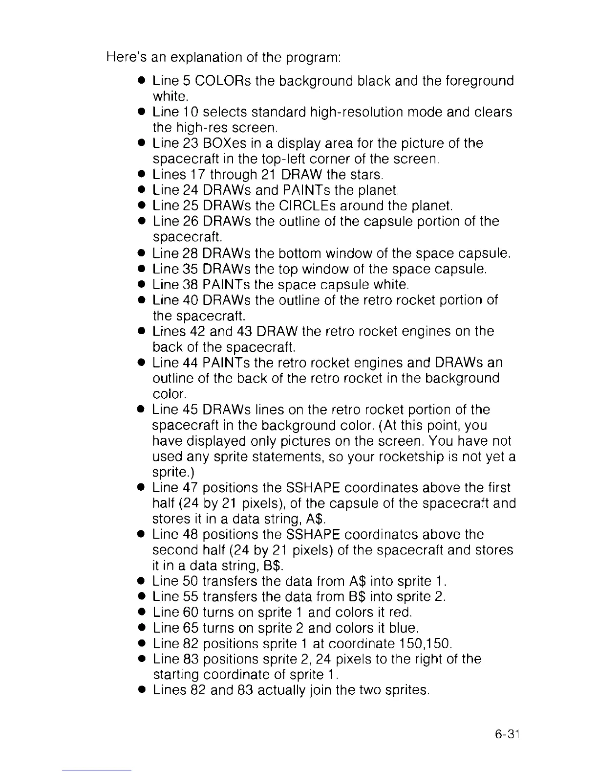• Line 44 PAINTs the retro rocket engines and DRAWs an