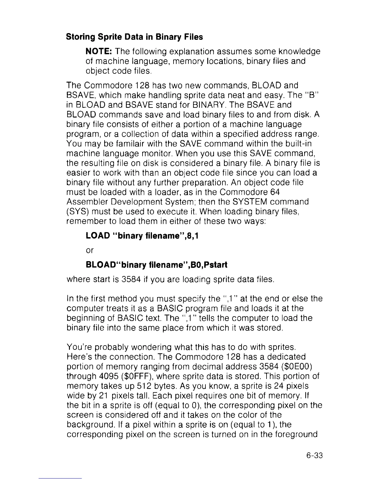 (SYS) must be used to execute it. When loading binary files,