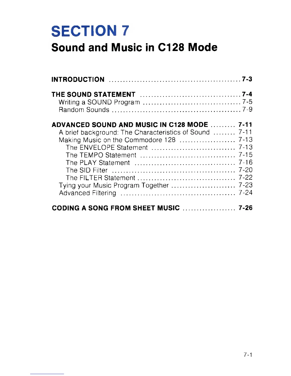 ADVANCED SOUND AND MUSIC IN C128 MODE............ 7-11