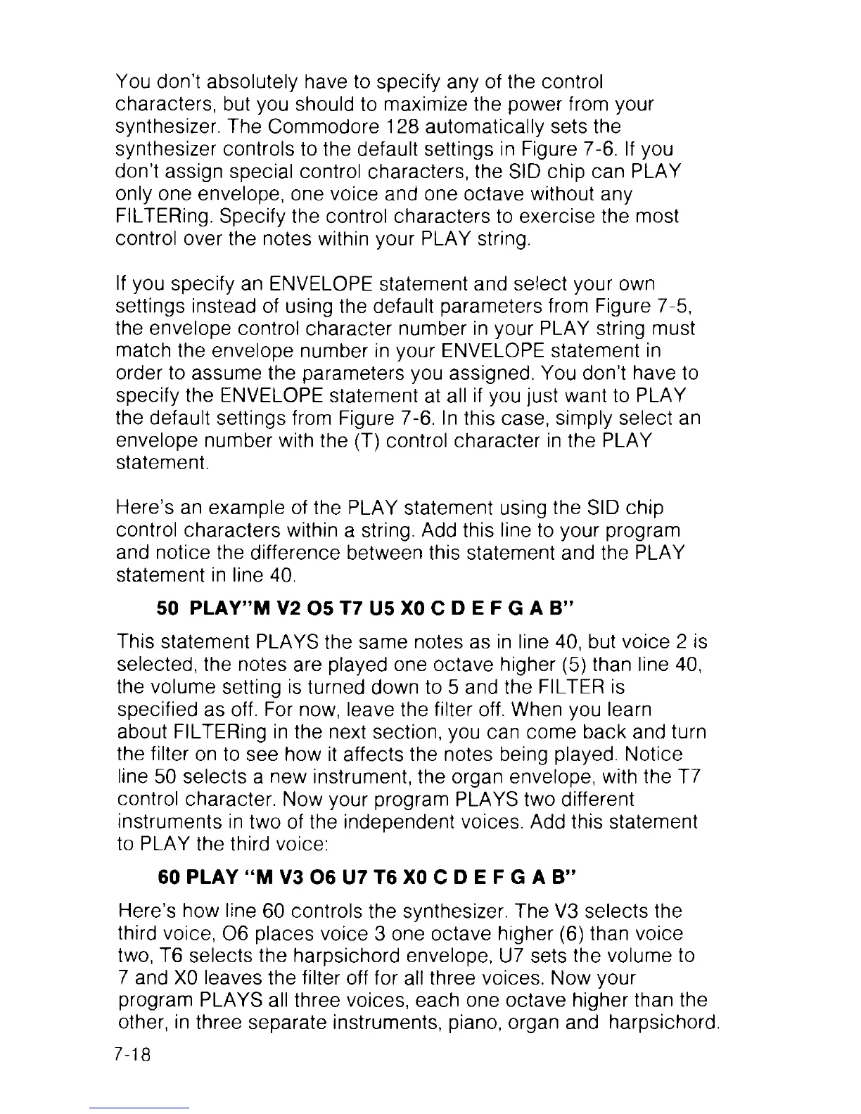 synthesizer. The Commodore 128 automatically sets the