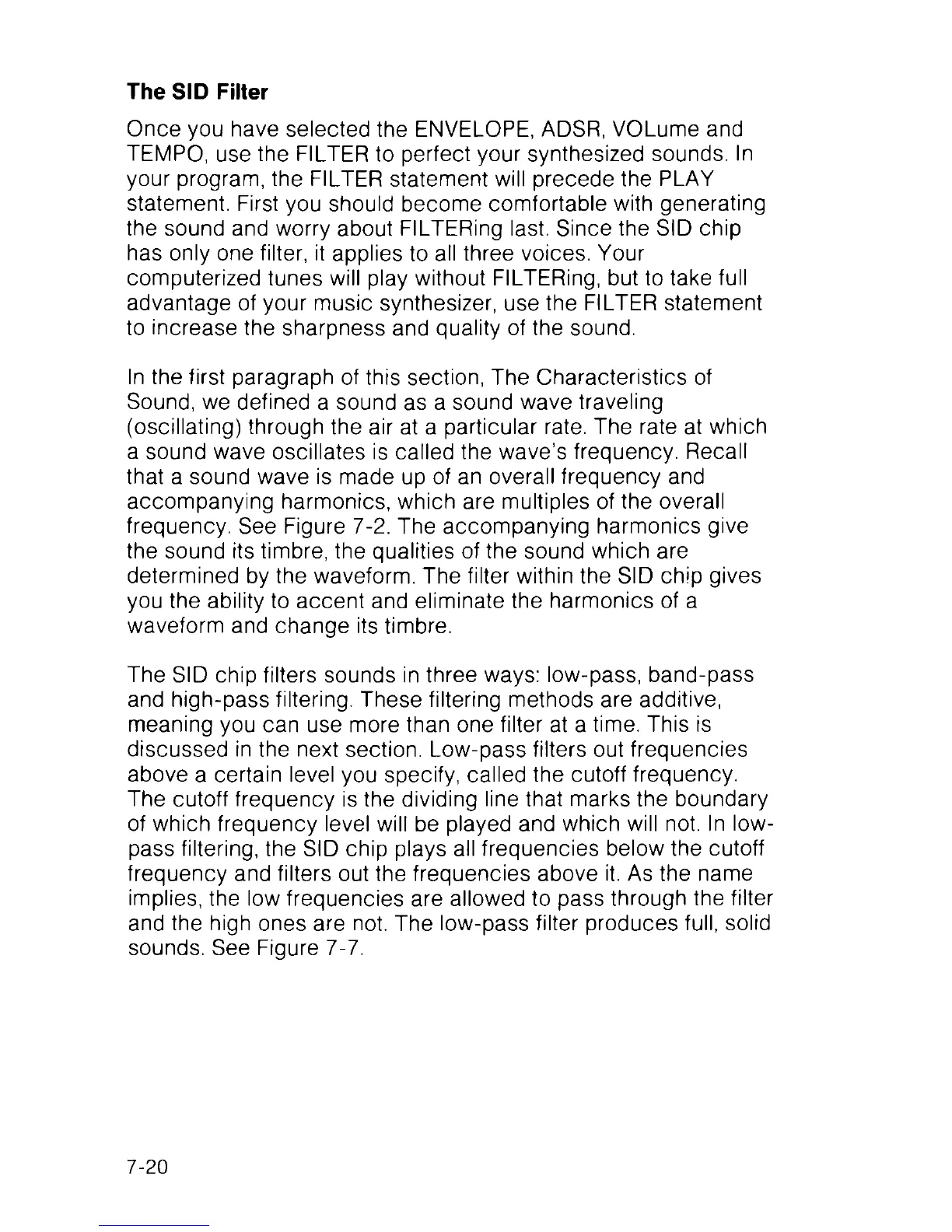 pass filtering, the SID chip plays all frequencies below the cutoff