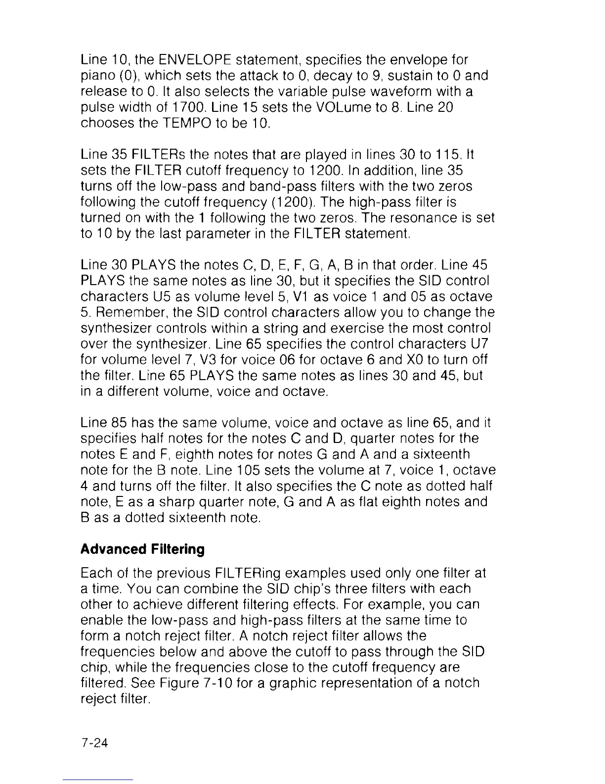 the filter. Line 65 PLAYS the same notes as lines 30 and 45, but