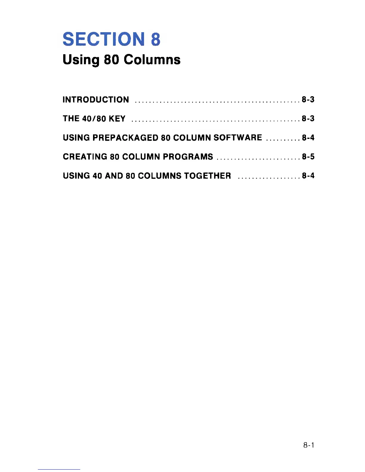 USING PREPACKAGED 80 COLUMN SOFTWARE ...............8-4
