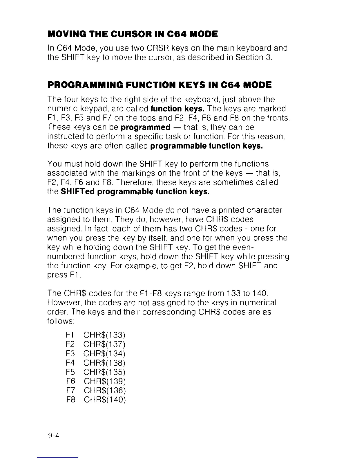 ln C64 Mode, you use two CRSR keys on the main keyboard and
