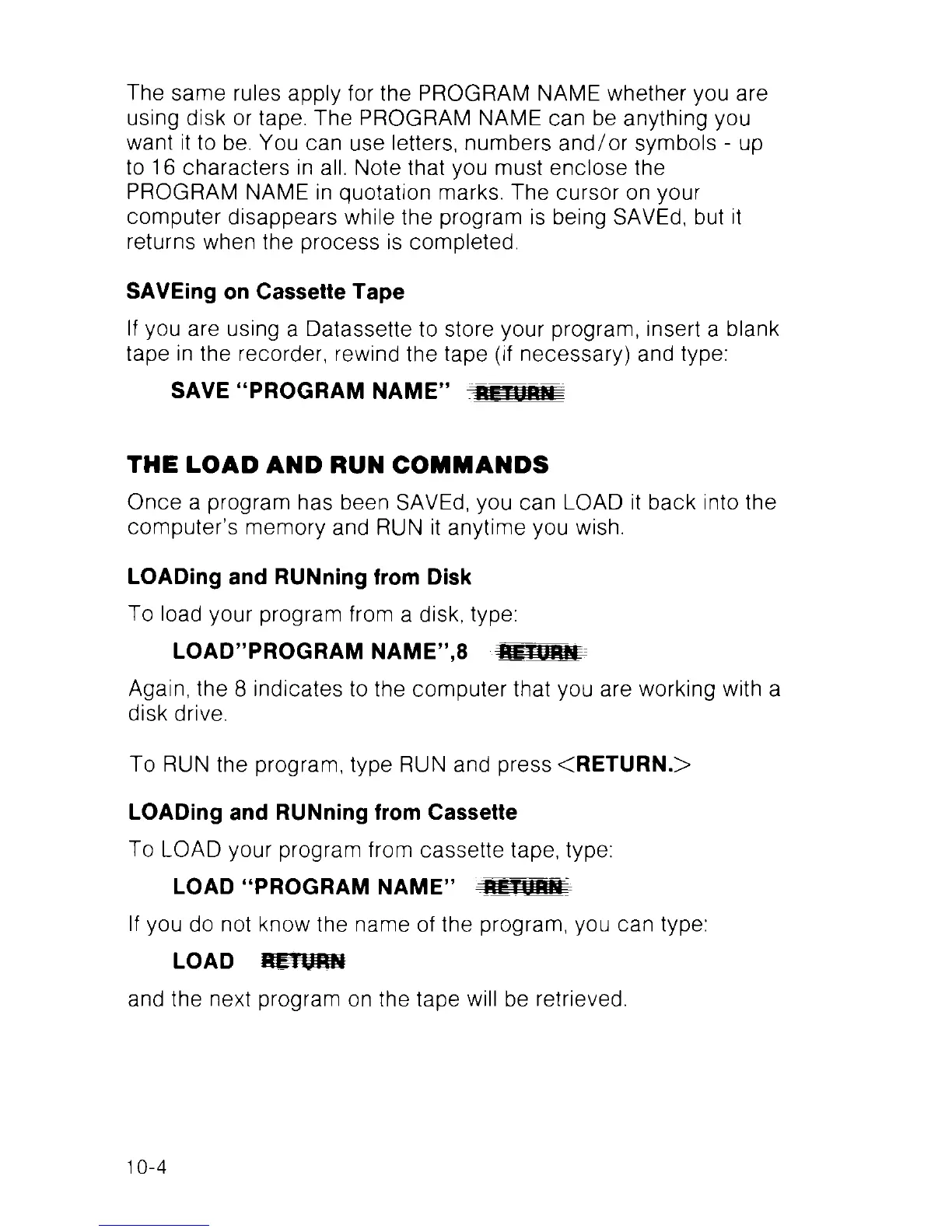 using disk or tape. The PROGRAM NAME can be anything you