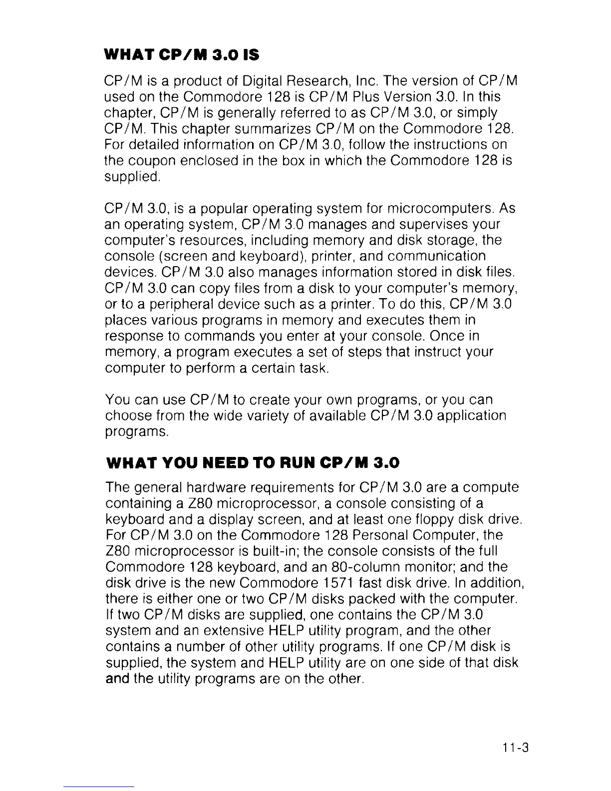 used on the Commodore 128 is CP/M Plus Version 3.0. ln this