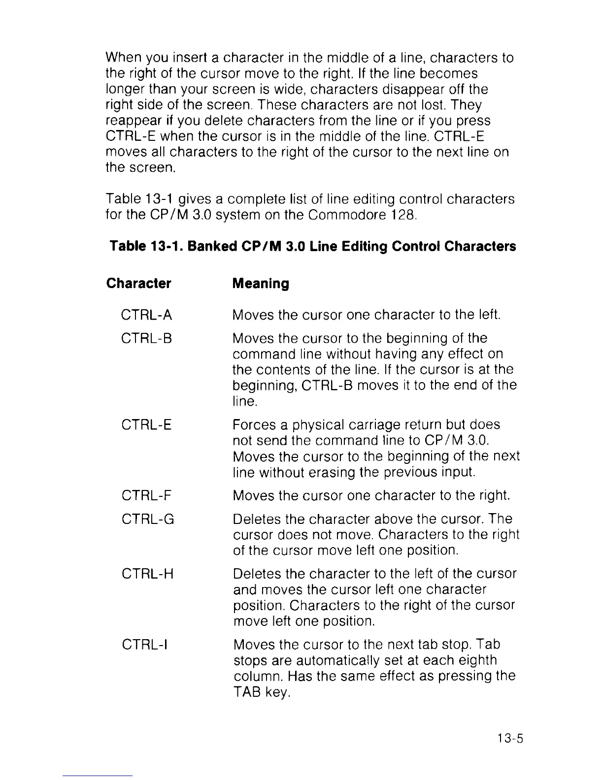 Table 13-1. Banked CP/M 3.0 Line Editing Control Characters