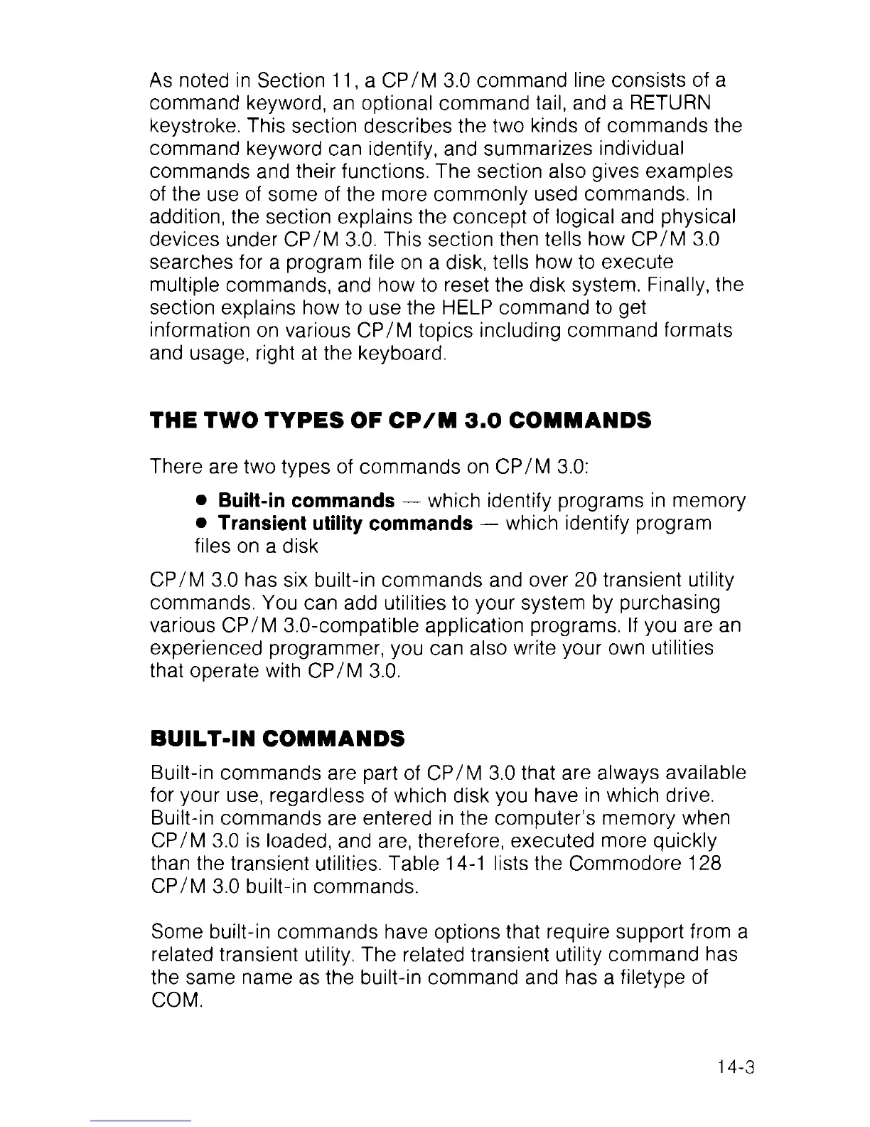 than the transient utilities. Table 14-1 lists the Commodore 128