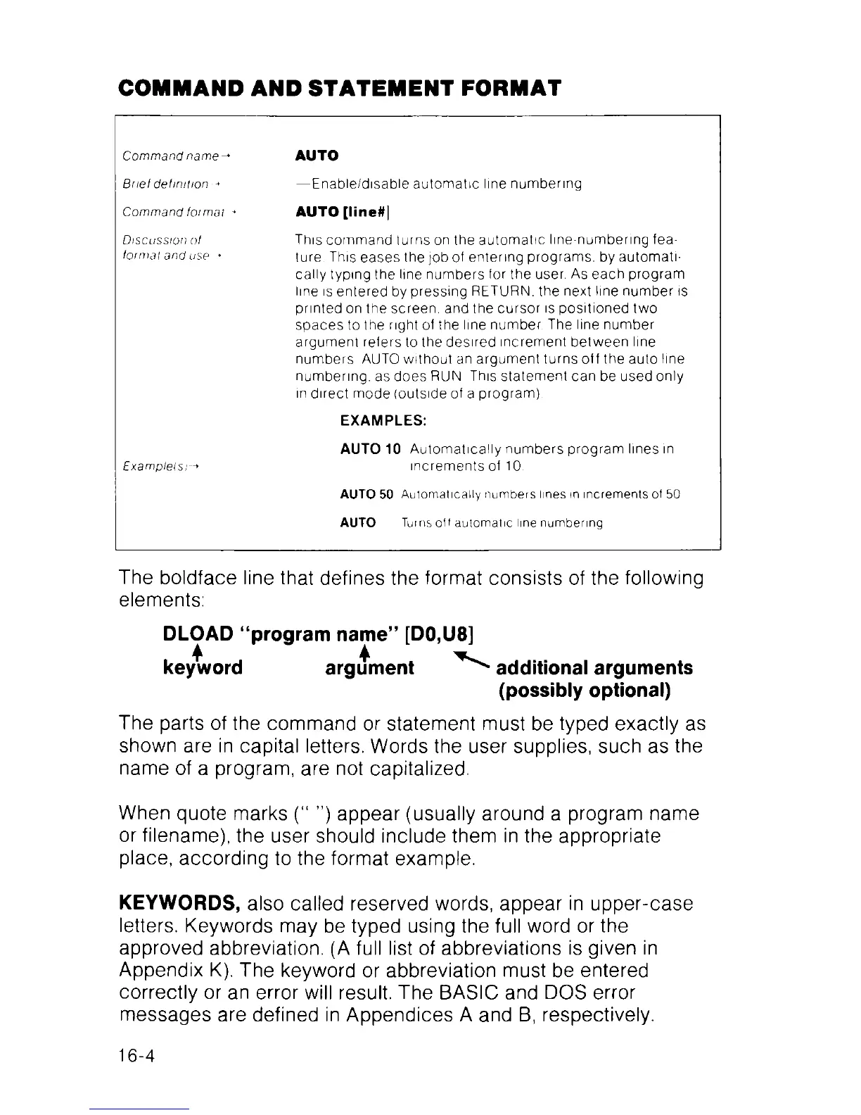 COMMAND AND STATEMENT FORMAT