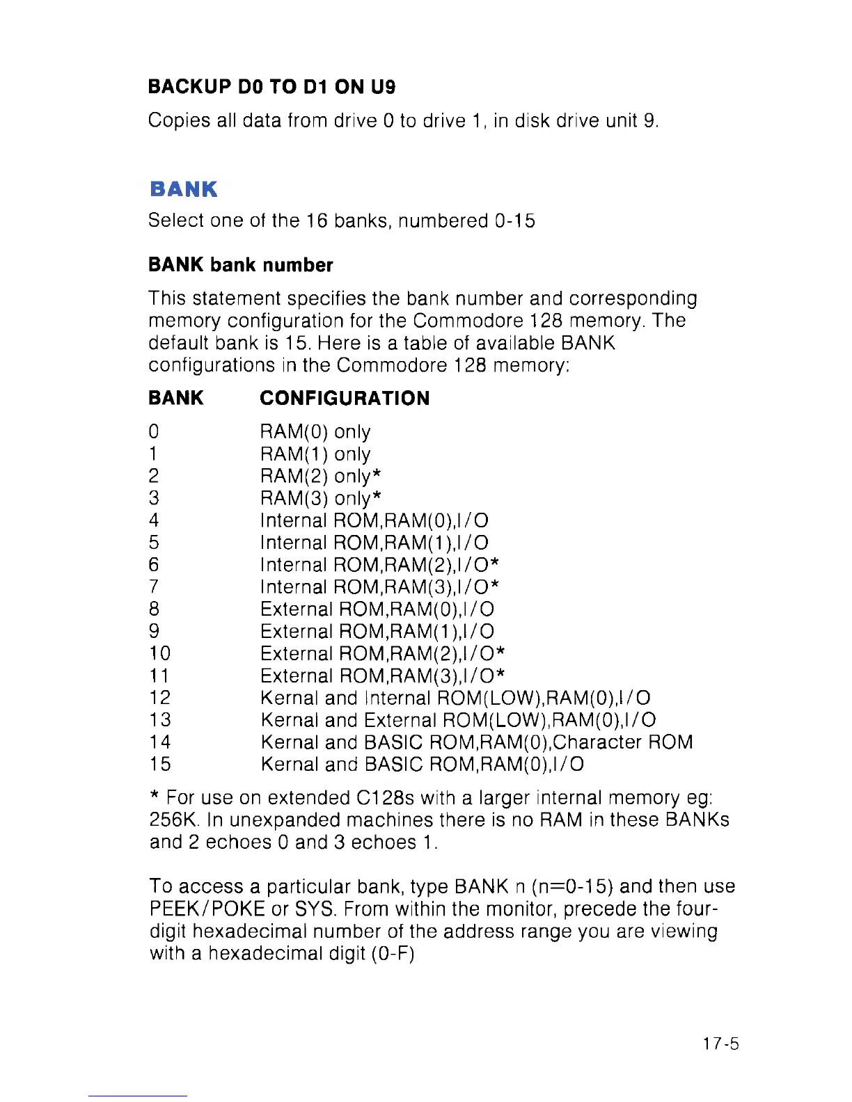 To access a particular bank, type BANK n (n=0-15) and then use
