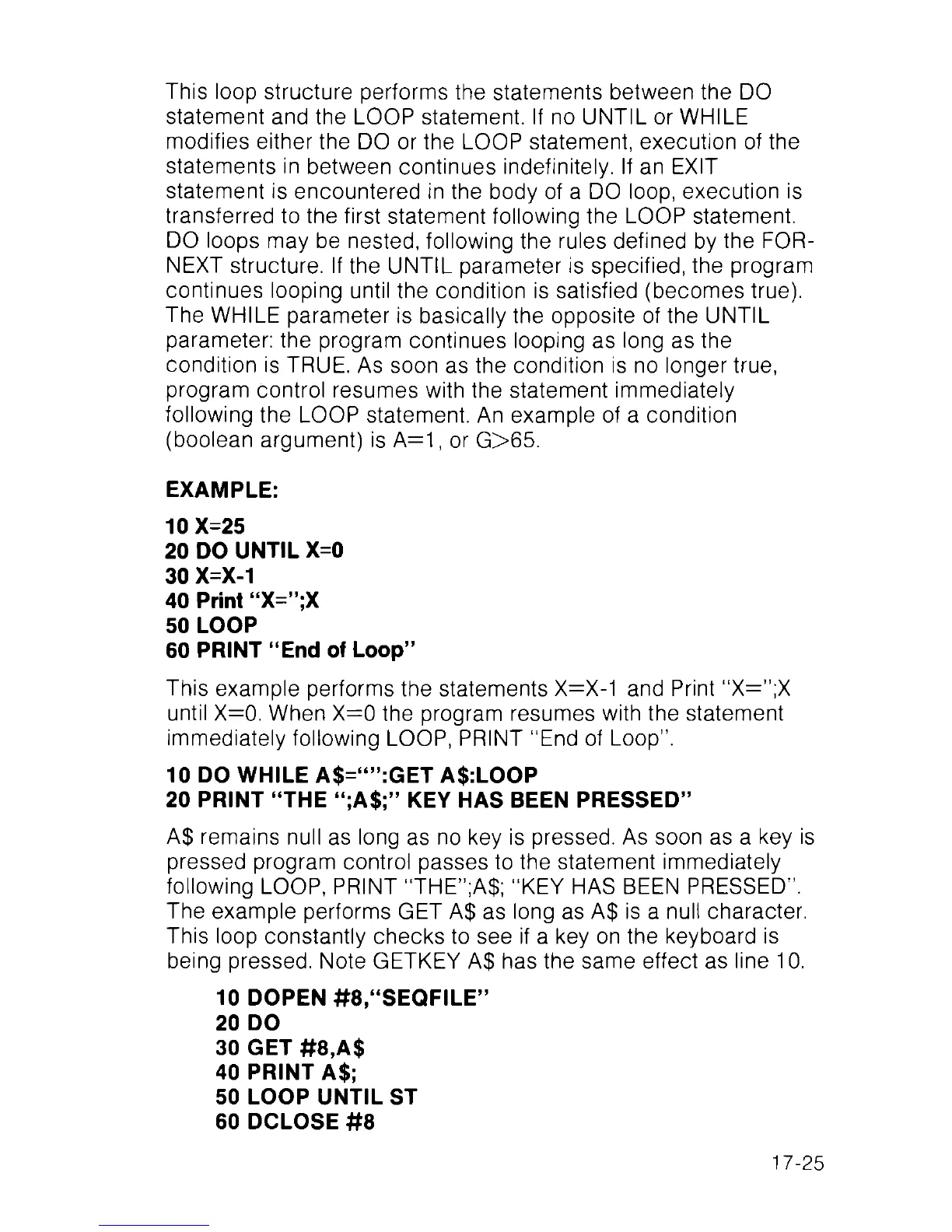 being pressed. Note GETKEY A$ has the same effect as line 10.