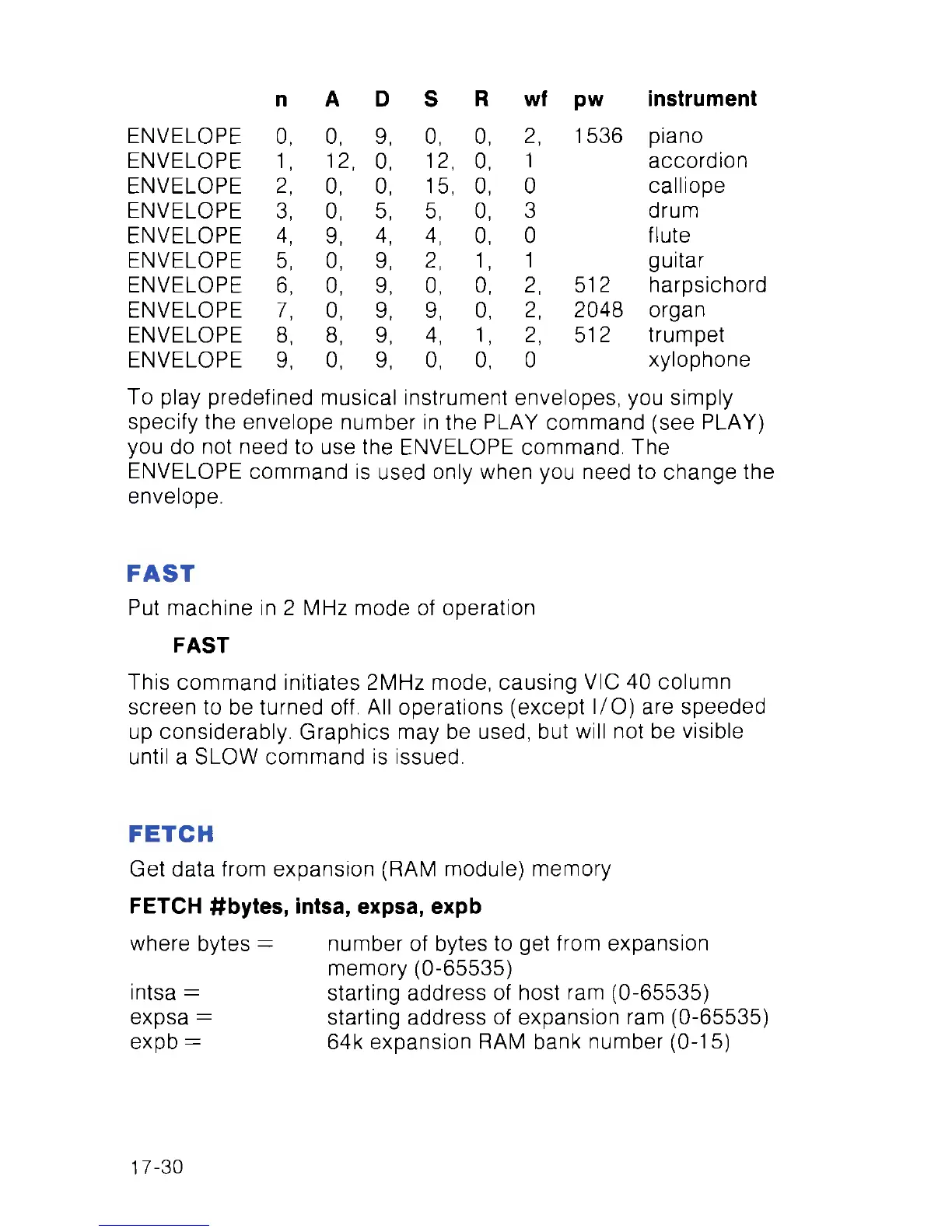 specify the envelope number in the PLAY command (see PLAY)